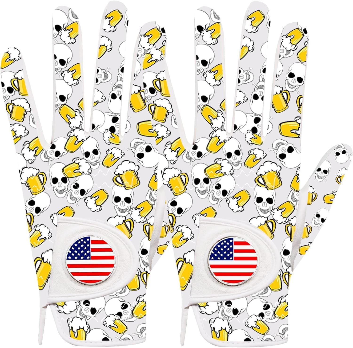 FINGER TEN Golf Gloves Men Right Handed Golfer Left Hand with Ball Marker 2 Pack Leather Breathable Comfortable Weathersof Grip Size Small Medium ML Large XL