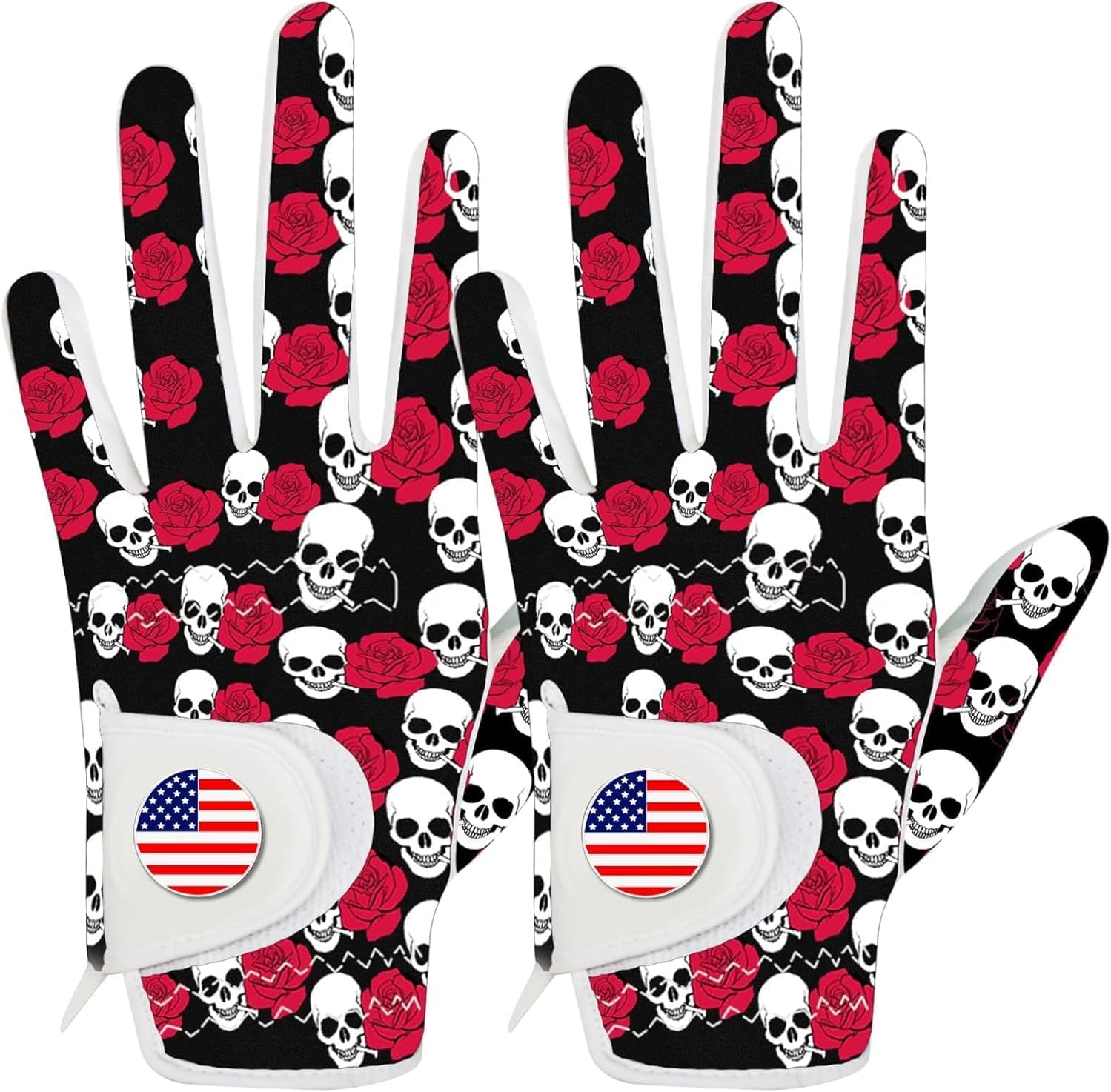 FINGER TEN Golf Gloves Men Right Handed Golfer Left Hand with Ball Marker 2 Pack Leather Breathable Comfortable Weathersof Grip Size Small Medium ML Large XL