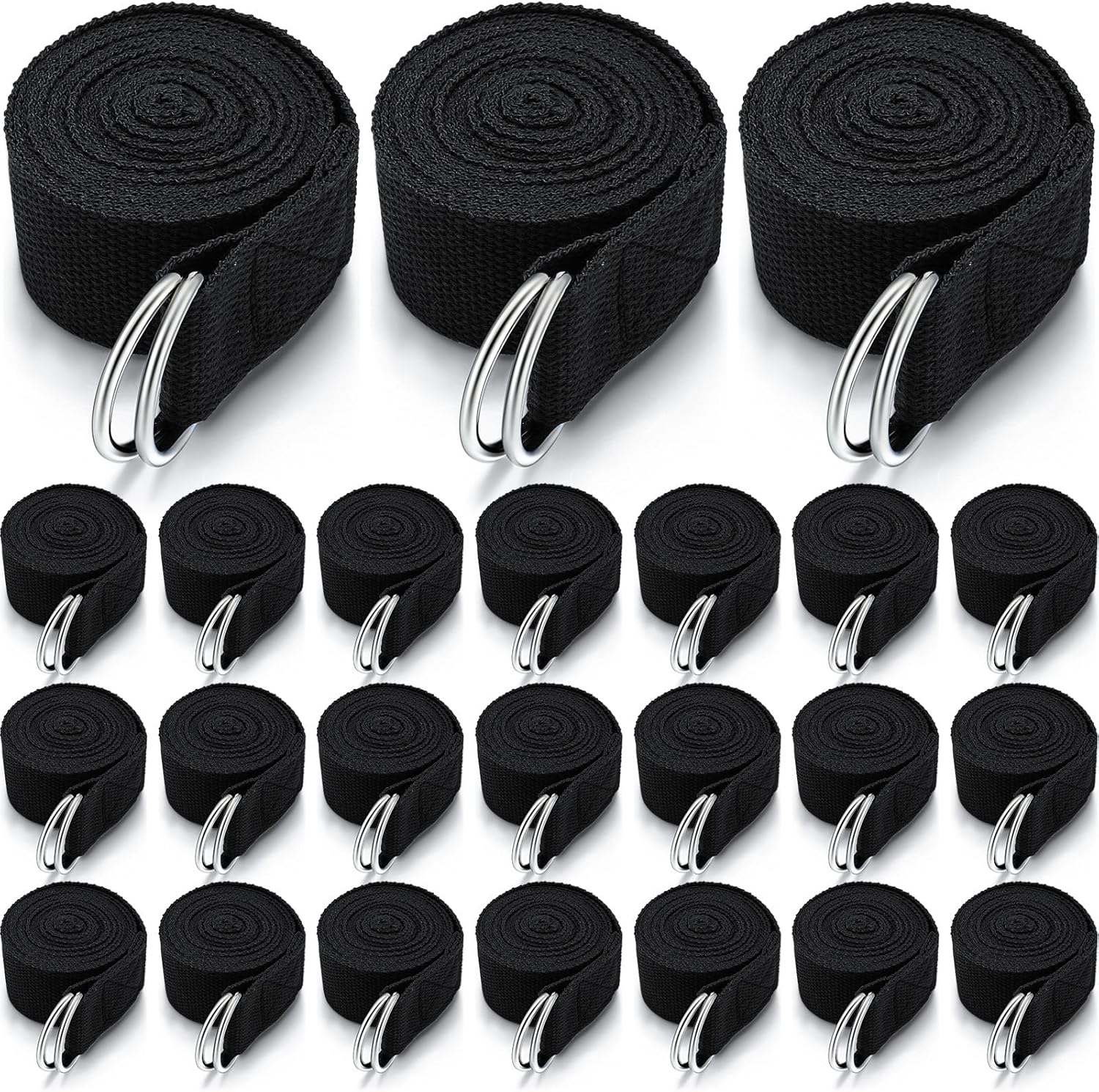 Leyndo 24 Pieces Yoga Strap Stretching Pilates Exercise Adjustable Straps 6 ft Non Elastic Yoga Belt with Adjustable D Ring Buckle for Pilates Gym Workouts Fitness