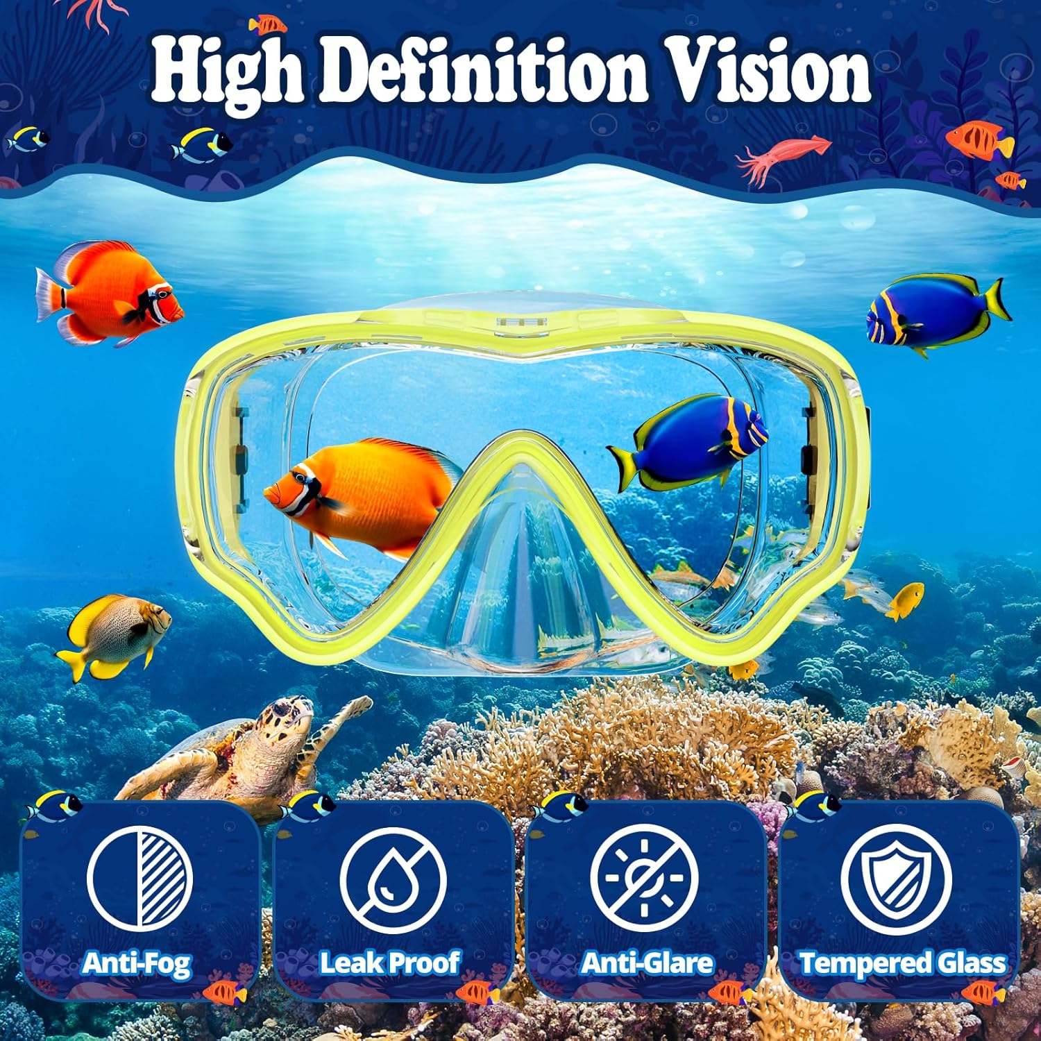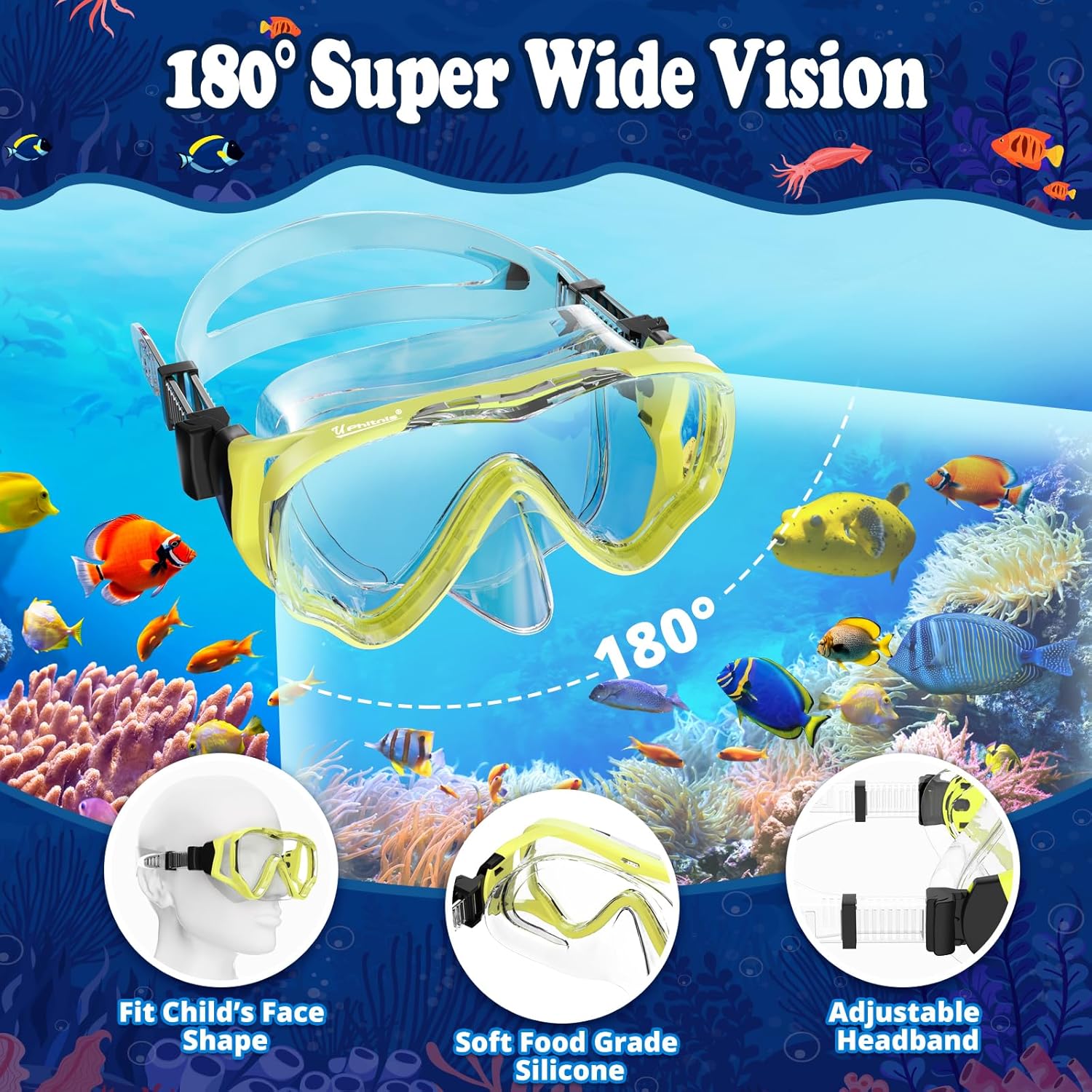 - 🌞【180°Panoramic View and Anti-fog always provide clear vision】- Enjoy maximum under-water visibility. Advanced tempered glass means your kids will have a clear underwater experience. Qualified tempered glasses can withstand the water pressure while snorkeling and diving, which is more safer than ordinary glass. One piece glass with anti-fog design enables better and wider vision under water.