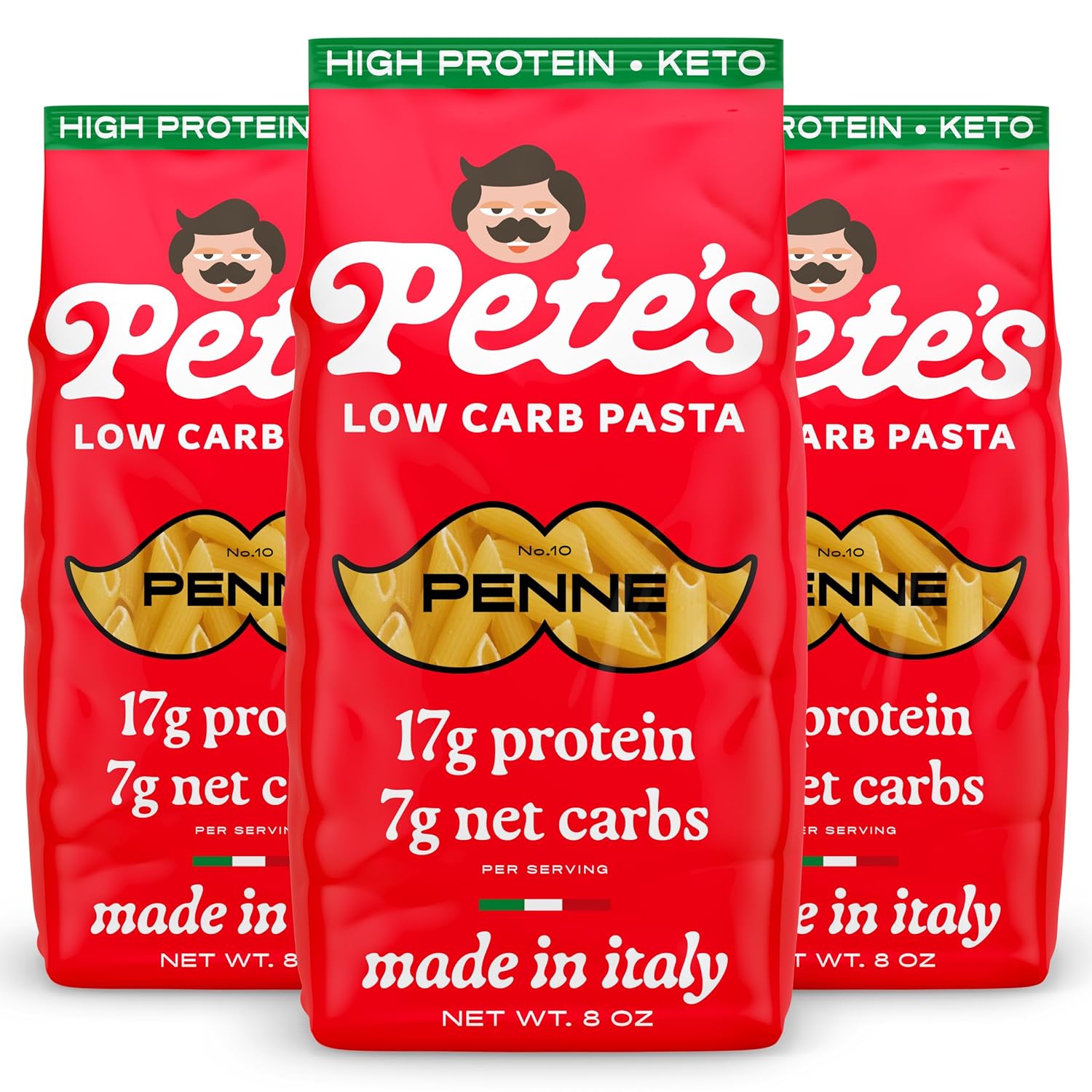 17g High Protein Penne Pasta | 7g Low Carb Keto Pasta | Healthy, Italian Pasta From Italy | 3-Pack, 8oz - Pete's Pasta