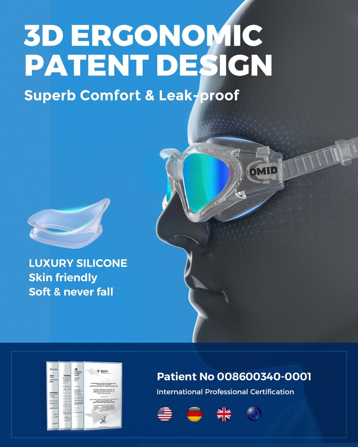 OMID Swim Goggles, P2 Polarized Swimming Goggles for Men Anti-fog Goggles Swimming for Adult Women