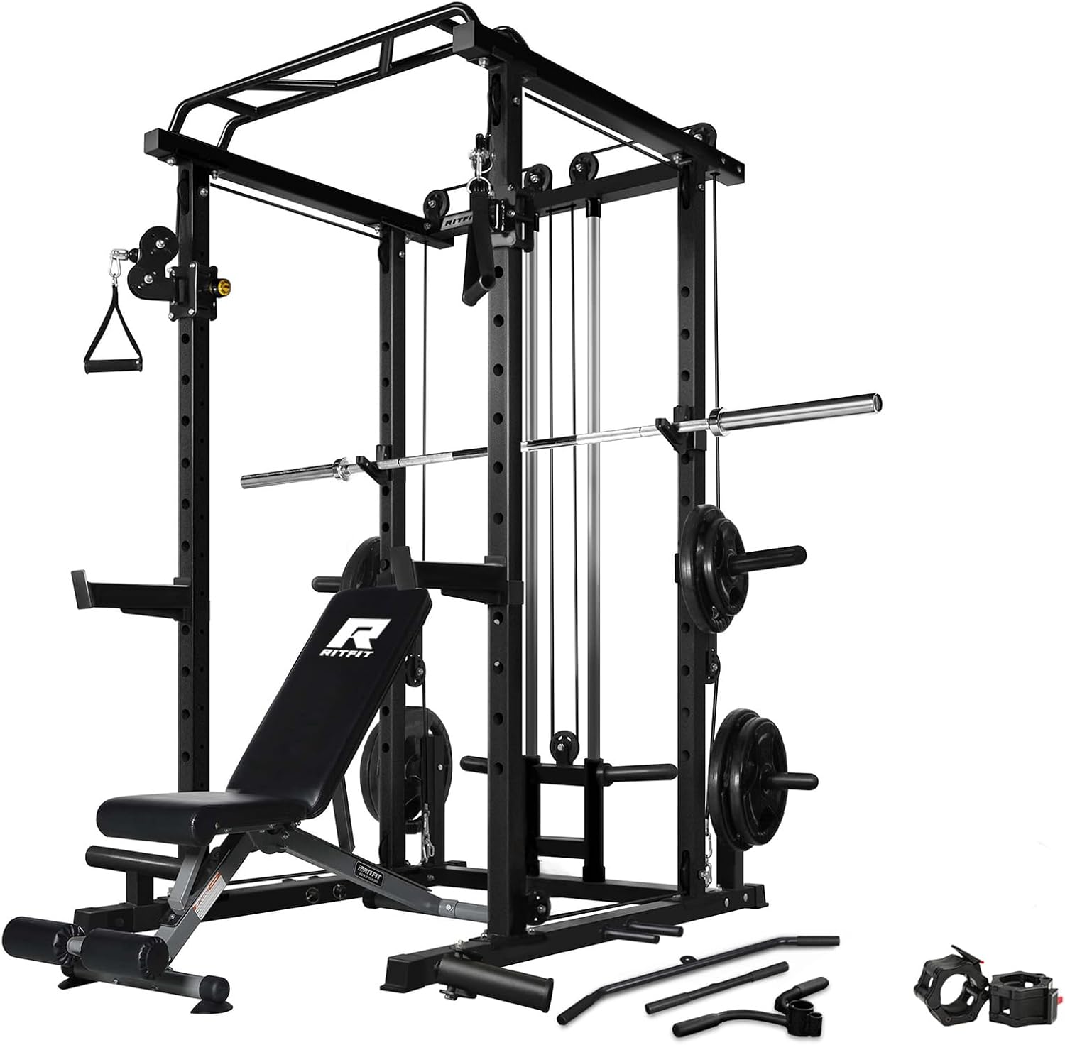 RitFit Multi-Function Squat Rack Power Cage PPC03 with Cable Crossover System, 1000LBS Capacity Power Rack and Packages with Optional Weight Bench, Barbell Weight Set, for Garage Workout & Home Gym