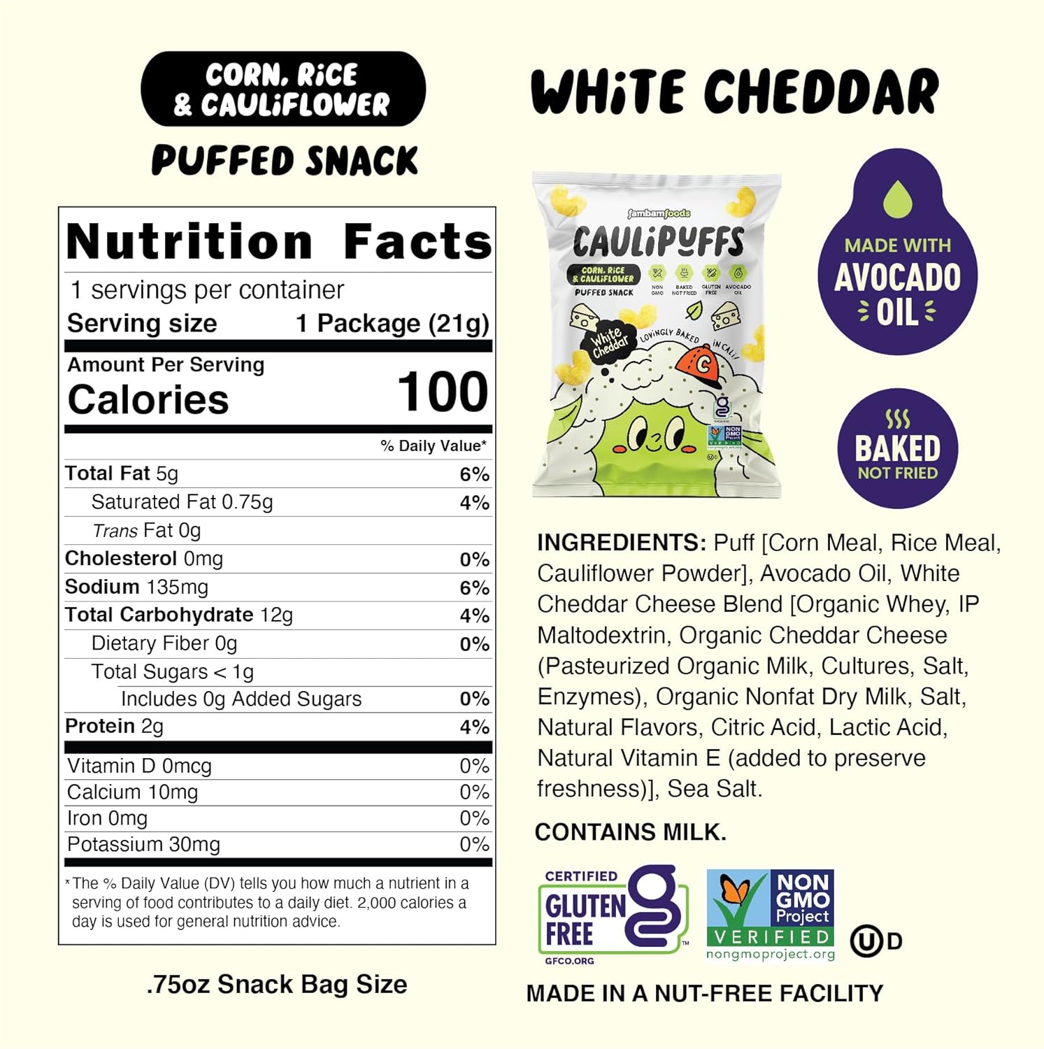 - Luscious light and airy cheese puffs, delightfully seasoned with cauliflower and cheddar. Satisfy crunch cravings for the whole family.