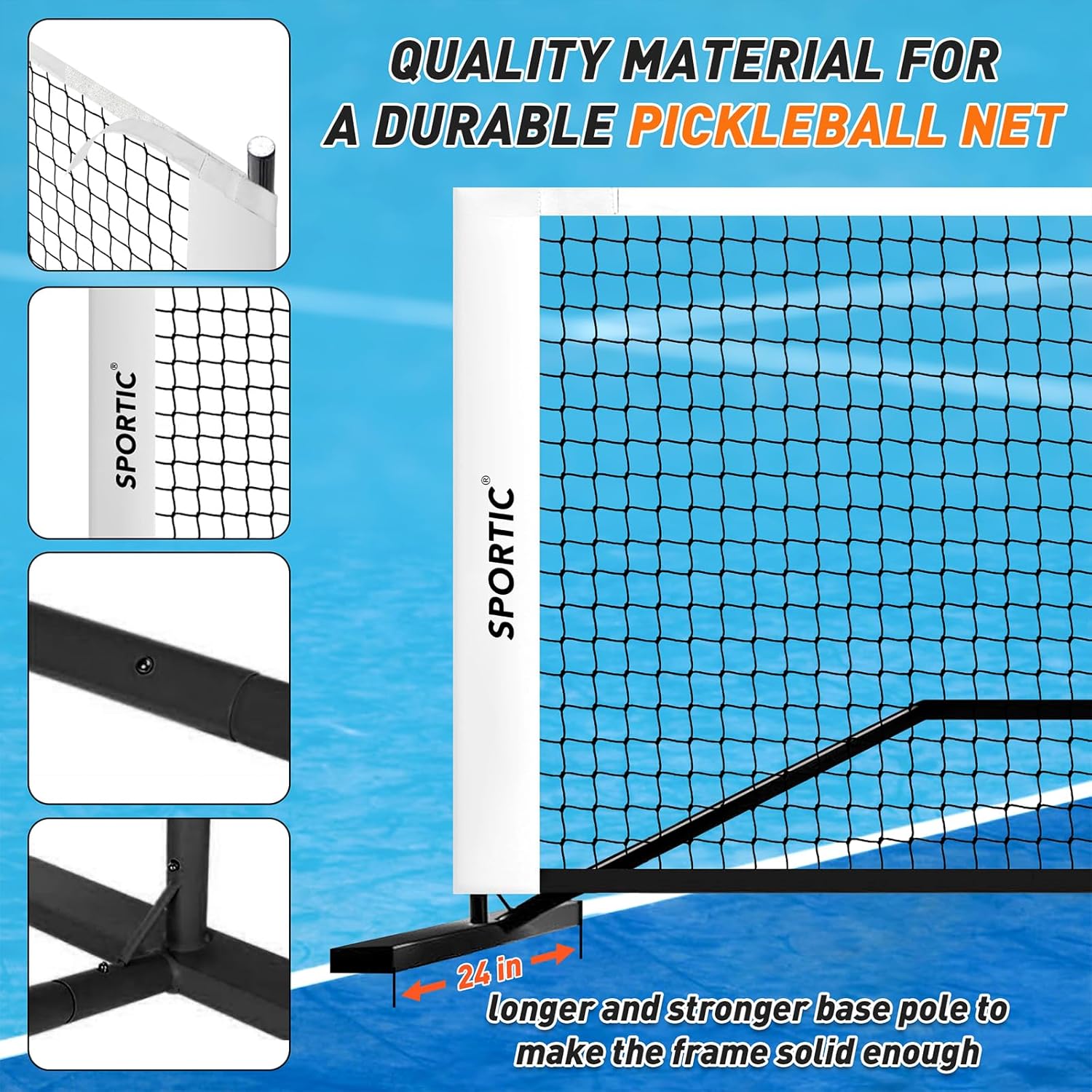 SPORTIC 22FT Pickleball Net Set – Regulation Size Portable Net with Carry Bag, Court Markers, Quick Setup Steel Frame for Driveway, Backyard, Indoor & Outdoor
