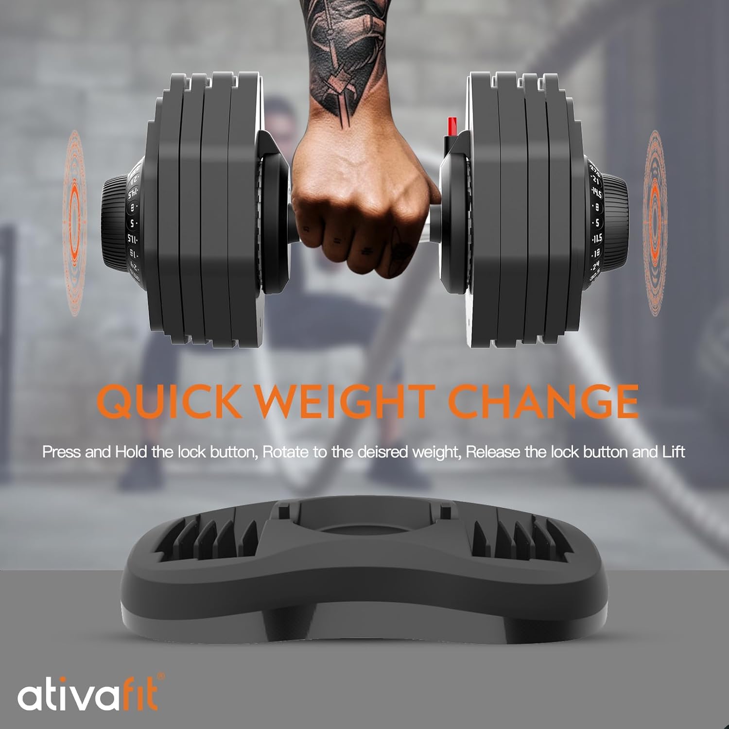 - 12 in 1 Adjustable Weights Set: Ranging from 11LB to 88LB, with 12 levels of adjustment (11, 18, 25, 32, 39, 46, 53, 60, 67, 74, 81, 88). From strength training to HIIT workouts, Ativafit 88lbs pair adjustable dumbbell set allows for a wide range of exercises to target different muscle groups.