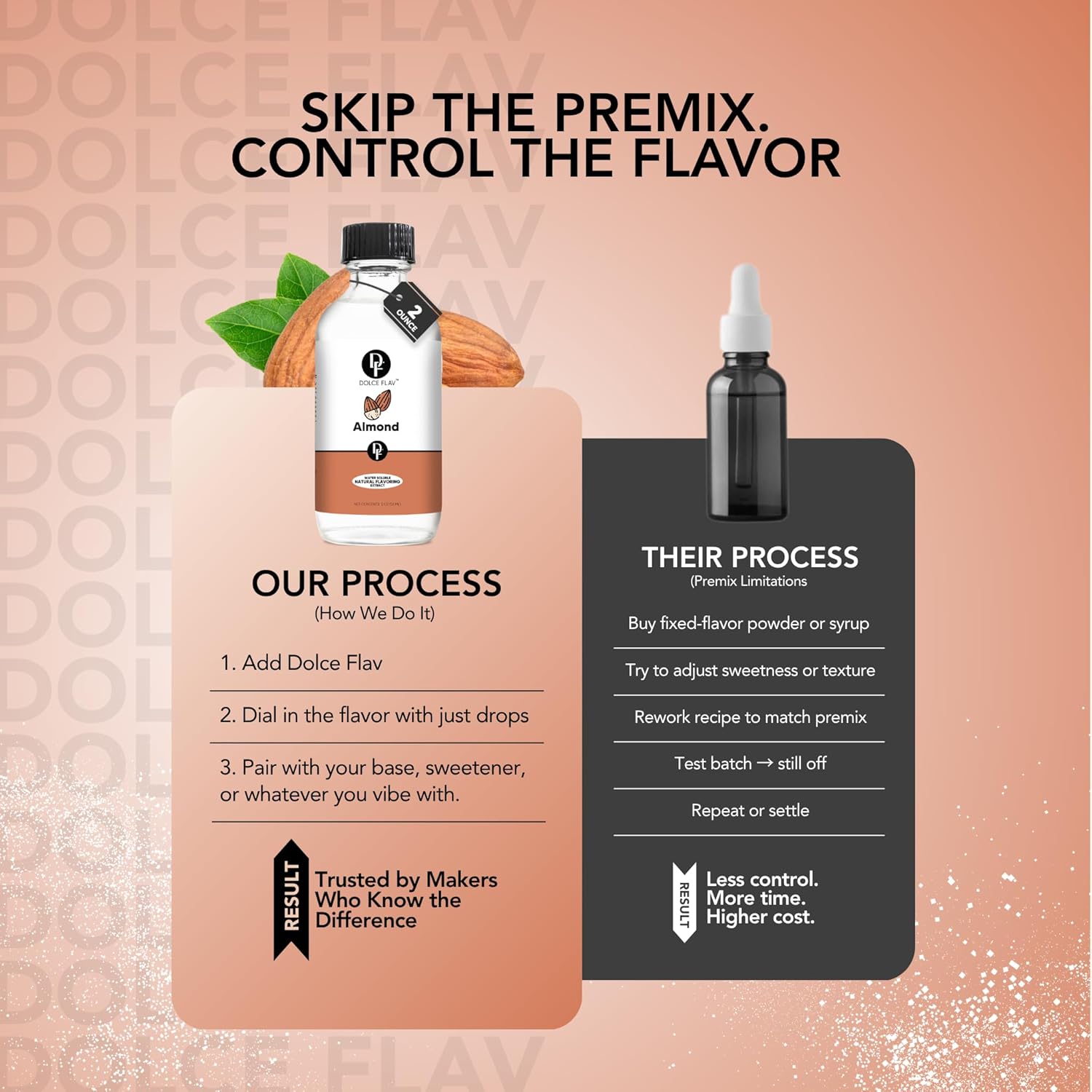 - Innovative Culinary Adventures with Almond: Take your cooking to new heights with our sugar-free almond concentrate. Produced in the USA, it adds a complex almond note to a broad spectrum of recipes, ideal for creative culinary efforts. Use it in savory almond sauces, dressings, or desserts for a rich infusion of almond taste.