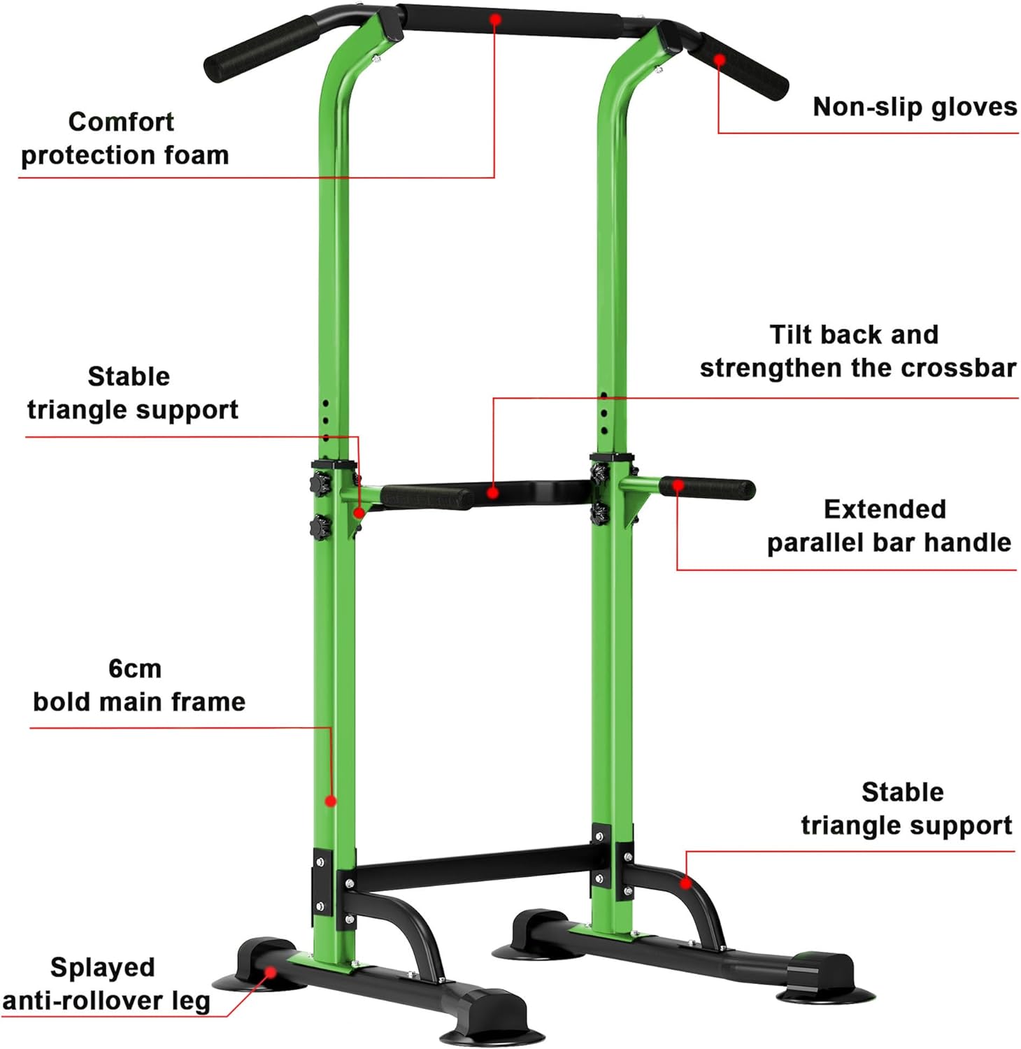 SogesHome Power Tower Pull Up Bar and Dip Station Adjustable Height Dip Stand Multi-Functional Strength Training Fitness Workout Station
