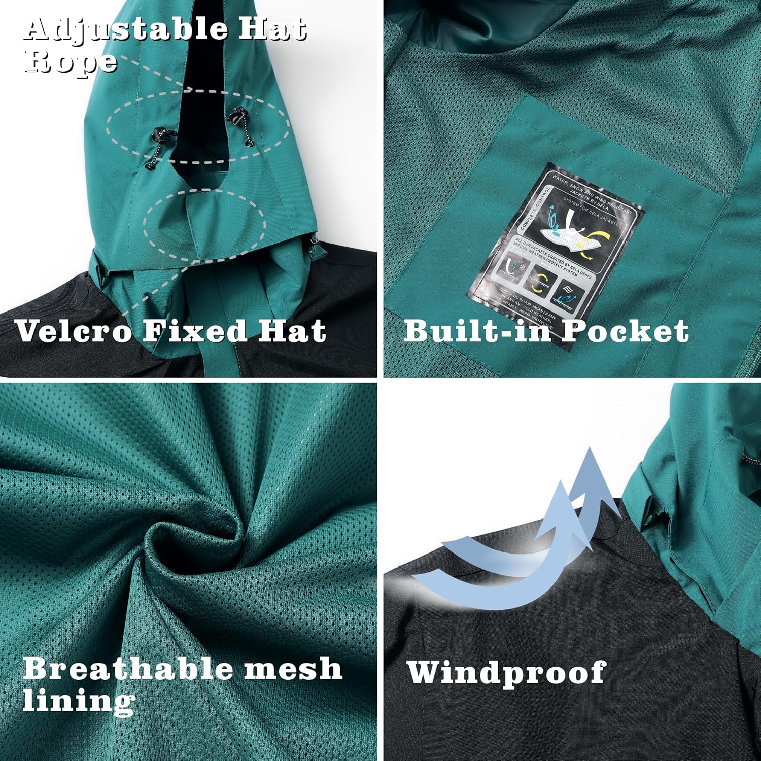 • [Adjustable Highlights]: The hood of this men's waterproof jacket hoodie is detachable and the hood has stretch straps to fit various environmental needs. Detachable hood provides different ways of wearing. The sleeves have adjustable cuffs, which can against the cold wind and make it easy to adjust the length of the sleeves.
