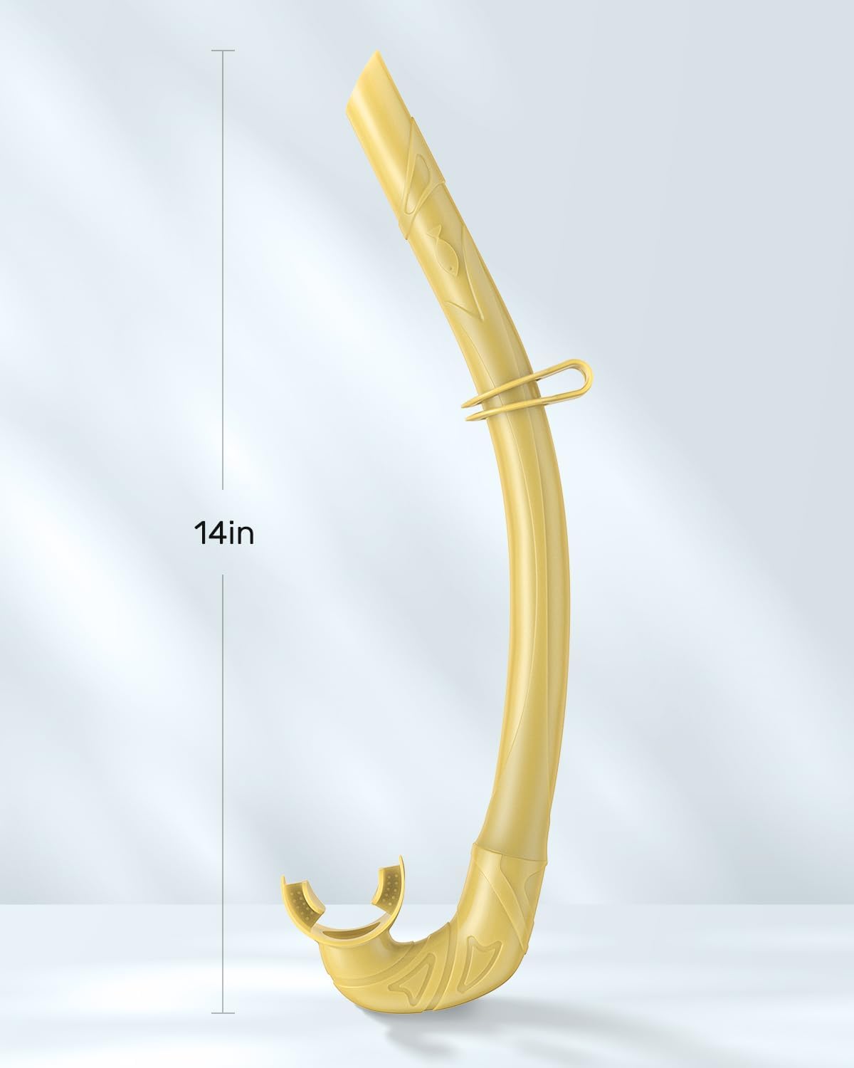 - 【100% Silicone Material】Top-quality food grade silicone is safe and extremely malleable.Breathing Tube,Mouthpiece and snorkel keeper are made of silicone.Classic j-tube design is sturdy and reliable.Provide you with a safe environment