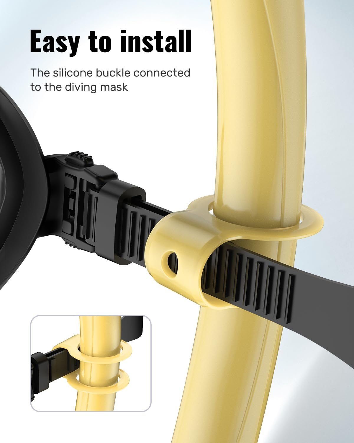 - 【Silicone Snorkel Keeper】The holder is different from others. WSTOO's holder is made of soft silicone material and is made of two connected circles. When connecting the breathing tube to the dive mask, only one side needs to be removed. Very easy to operate.