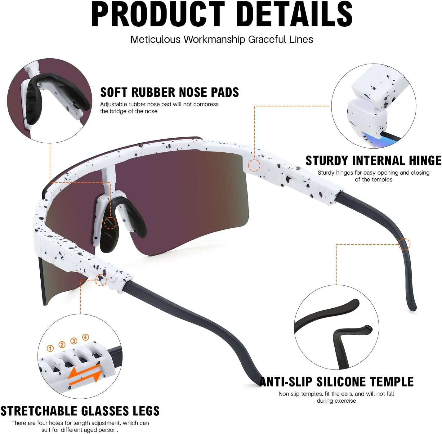 - 【Adjustable Temple & Nose Pad】 MALIDAK sports sunglasses allowing for a personalized fit as well as ensuring comfort and a secure placement on wearer’s face during intense workouts, without slipping or pinching with the adjustment of the nose pad and glasses ear pieces, which can fit for different face sizes!