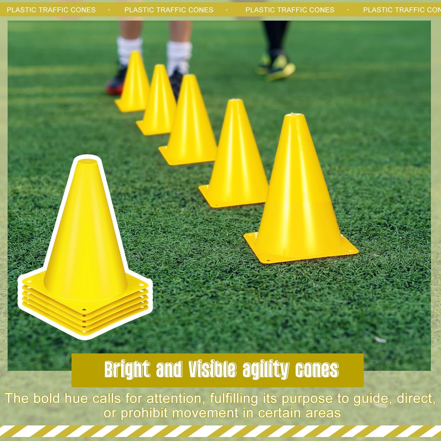 - Bright and Visible: each cone stands out with a vivid yellow color, ensuring visibility even from a distance or under low light conditions; The bold hue calls for attention, fulfilling its purpose to guide, direct, or prohibit movement in certain areas; It's the suitable companion for practice sessions, games, and emergency scenarios needing a quick and noticeable marker