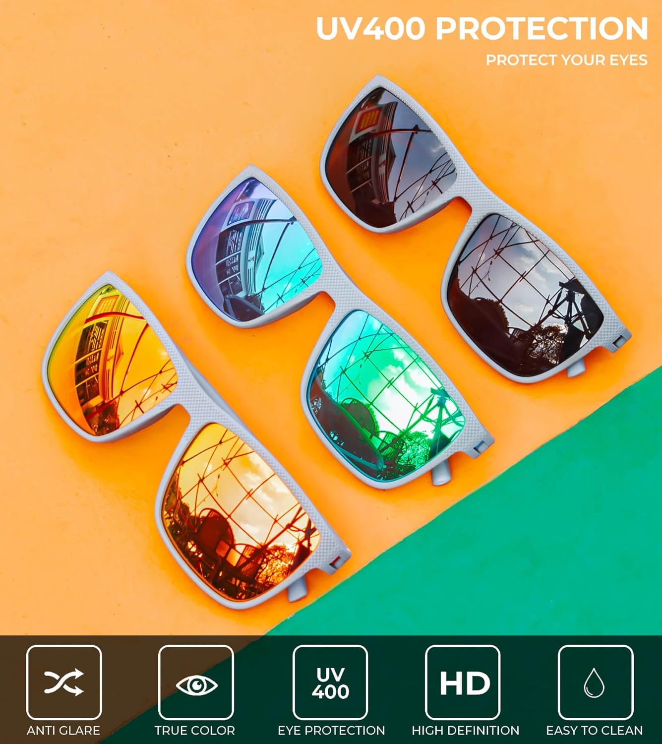 - π HD Polarized Lens βΆ To prevent your eyes from the harmful UV rays, all of KALIYADI mens sunglasses polarized choose premium polarized lenses with UV400 protection function. You can be free all the time under the sunlight without worrying about the of damage to your eyes from both UVA, UVB and glare. KALIYADI mens polarized sunglasses restore true color of the world and making it more clear and soft.