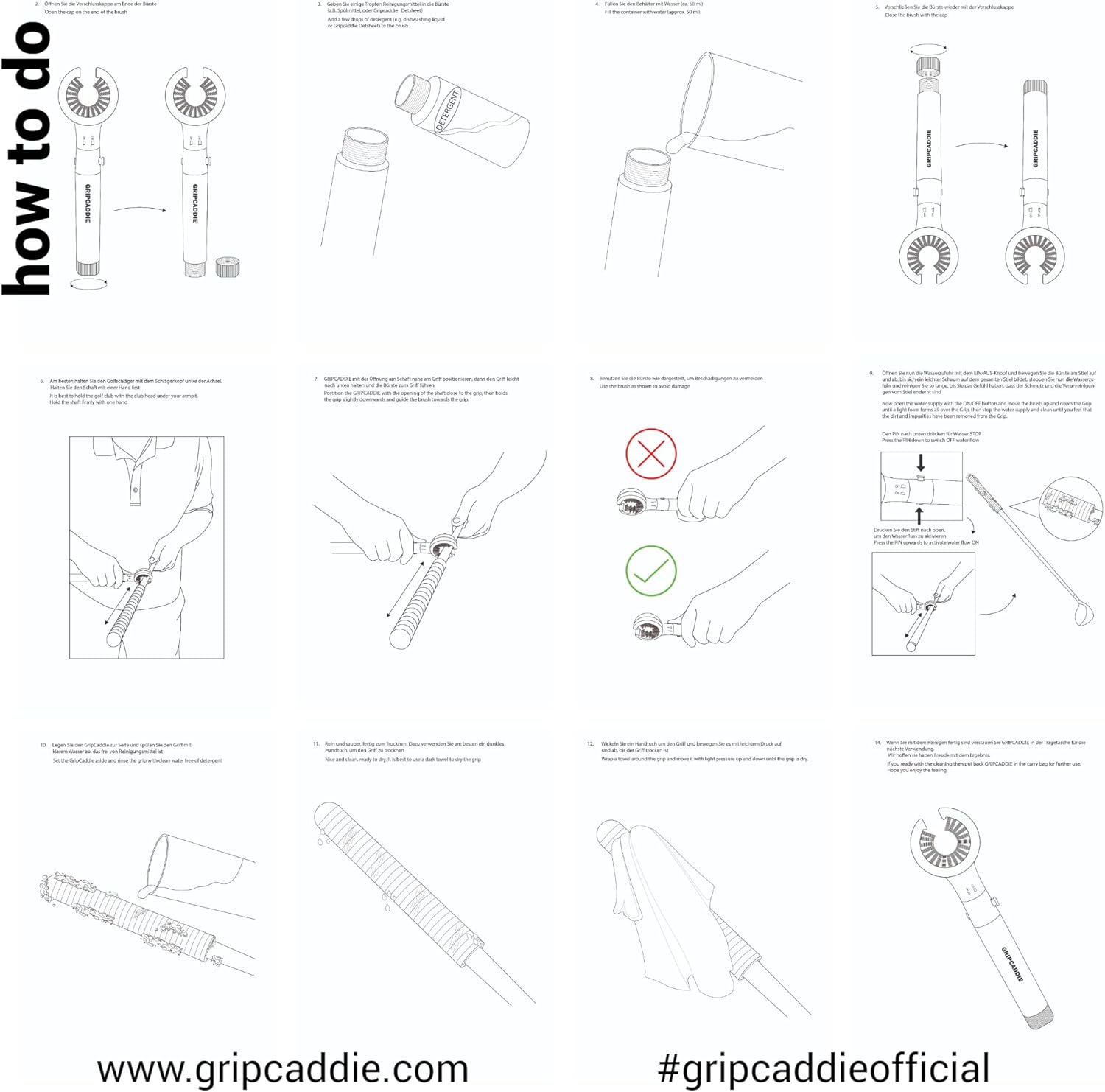 - GRIPCADDIE is the original innovative Golf Brush for Grip Cleaning: With its specialized brush head that penetrates deep into grooves and integrated water tank, GripCaddie is the easiest, fastest, and most effective way to clean your golf grips, eliminating the hassle of traditional brushes while giving you tackier grips in seconds.Any other Golf Grip cleaning brush is only a copy of GripCaddie! GripCaddie has a 40ml (good for 3 grips approx.) water bottle tank integrated, its easy to refill.