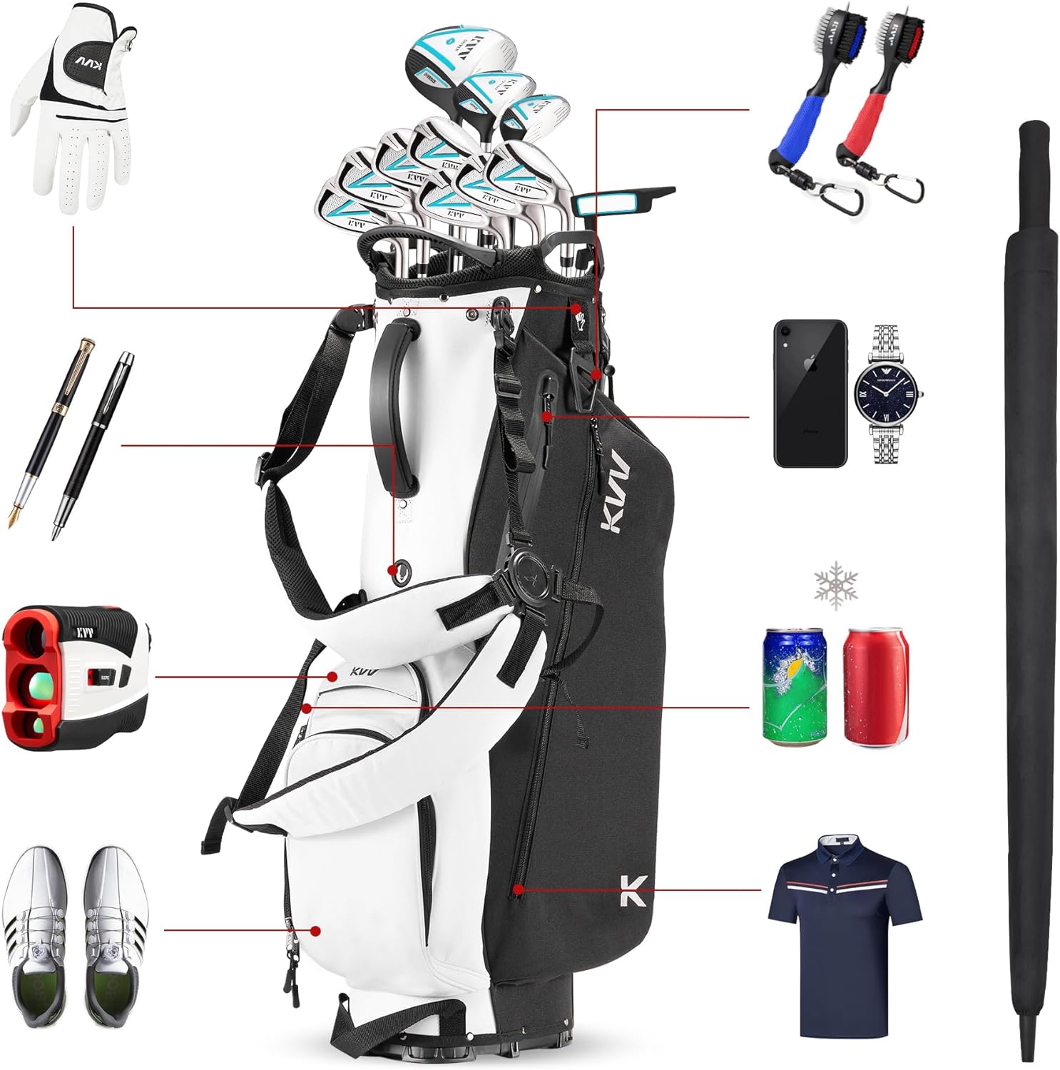 KVV Lightweight Golf Stand Bag with 7 Way Full-Length Dividers, 5 Zippered Pockets, Automatically Adjustable Dual Straps,Elegant Design