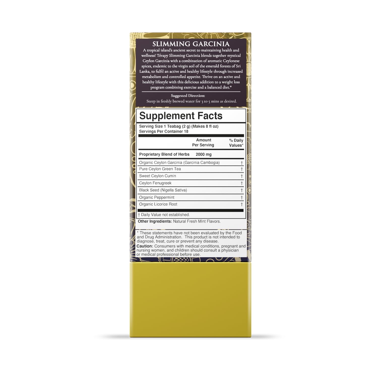 Tรฉrapy Ceylon All Day Slimming Tea | All Natural Herbal Ingredients featuring Garcinia Cambogia | Organic Herbal Slimming Tea Bags | Eco-friendly Individually Wrapped Tea Bags - 18 Count