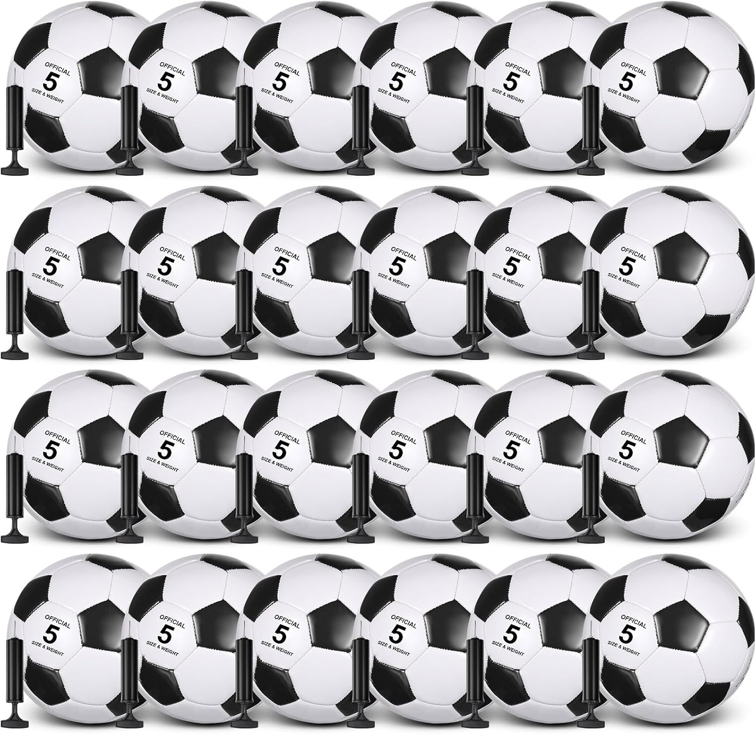 - Nice Soccer Ball Set: the package includes 24 soccer balls and 24 pumps with needle, it's ideal for football game playing, training, practice or entertainment, you can also give it as a gift to your friends, family; Please note that the ball is transported in a deflated state, please inflate it after receiving it