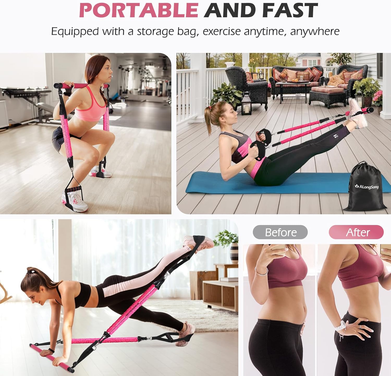 - 【Easy Installation and Convenient Storage】 Easy to assemble and portable, each Pilates set comes with a compact storage bag for convenient storage, allowing you to perform quick workouts anytime, anywhere. Whether at home, in the yard, at the gym, in the office, outdoors, in a hotel, or during business trips, a single ALongSong Pilates Bar Set is all you need to burn calories at your convenience.