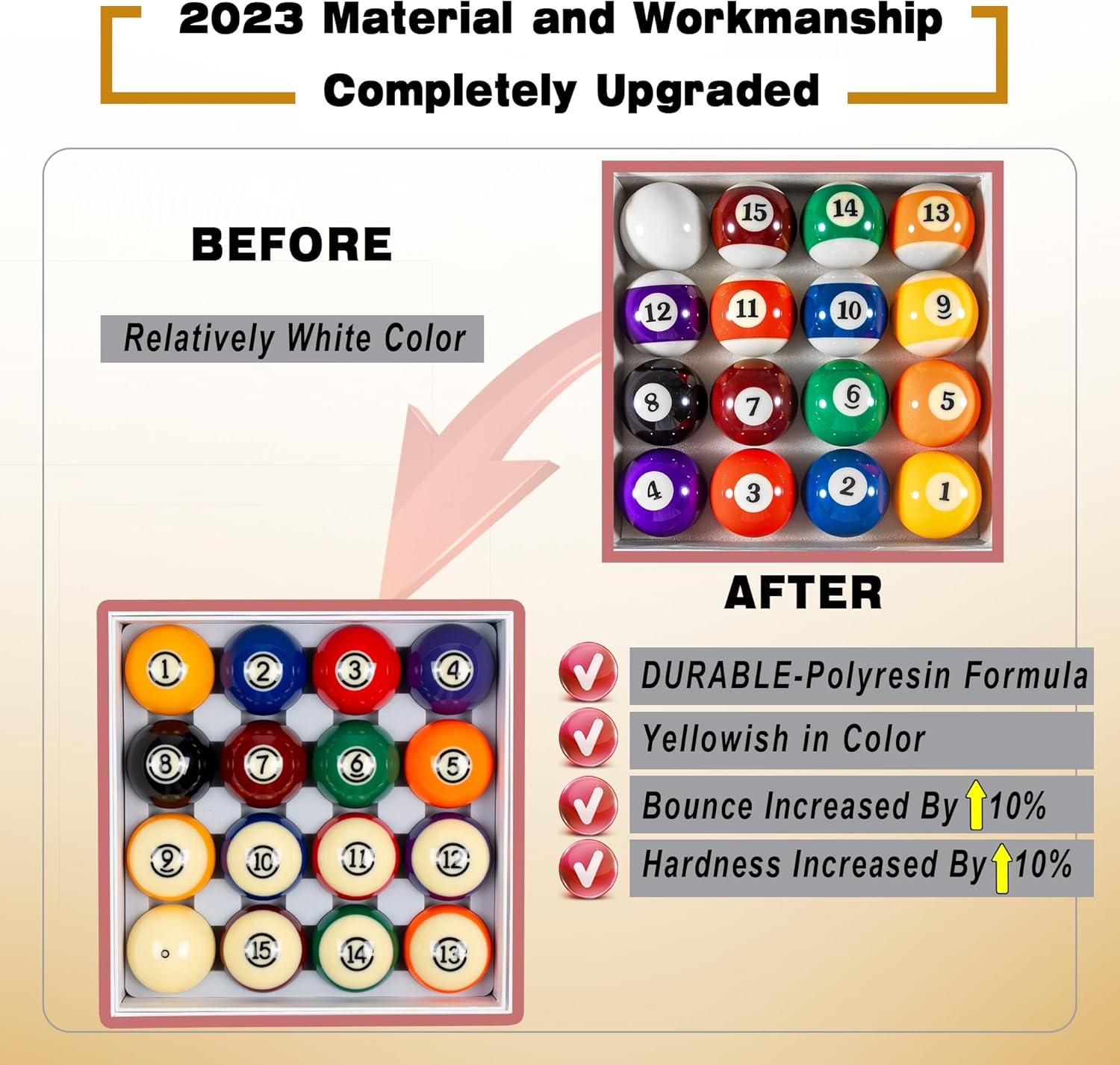 - 【TOURNAMENT GRADE】:Billmart billiard balls are crafted by highest grade polyester resin for tournament players.It has a similar performace as phenolic resin pool balls,with high friction resistance.These Bright balls are perfect for players in bars,home game room and pool halls who are looking to refresh their game room with high quality pool balls that will last for years to come.