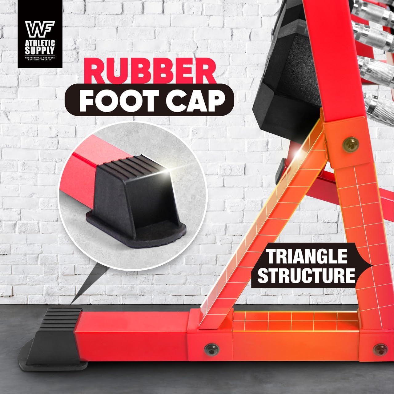WF Athletic Supply Heavy-Duty Dumbbell Rack Stand, Weight Rack for Home Gym, Weight Holder, Available Sizes for Storage 5-50LB or 5-75LB Dumbbell Pairs, Black/Red/Green/Blue, RACK ONLY