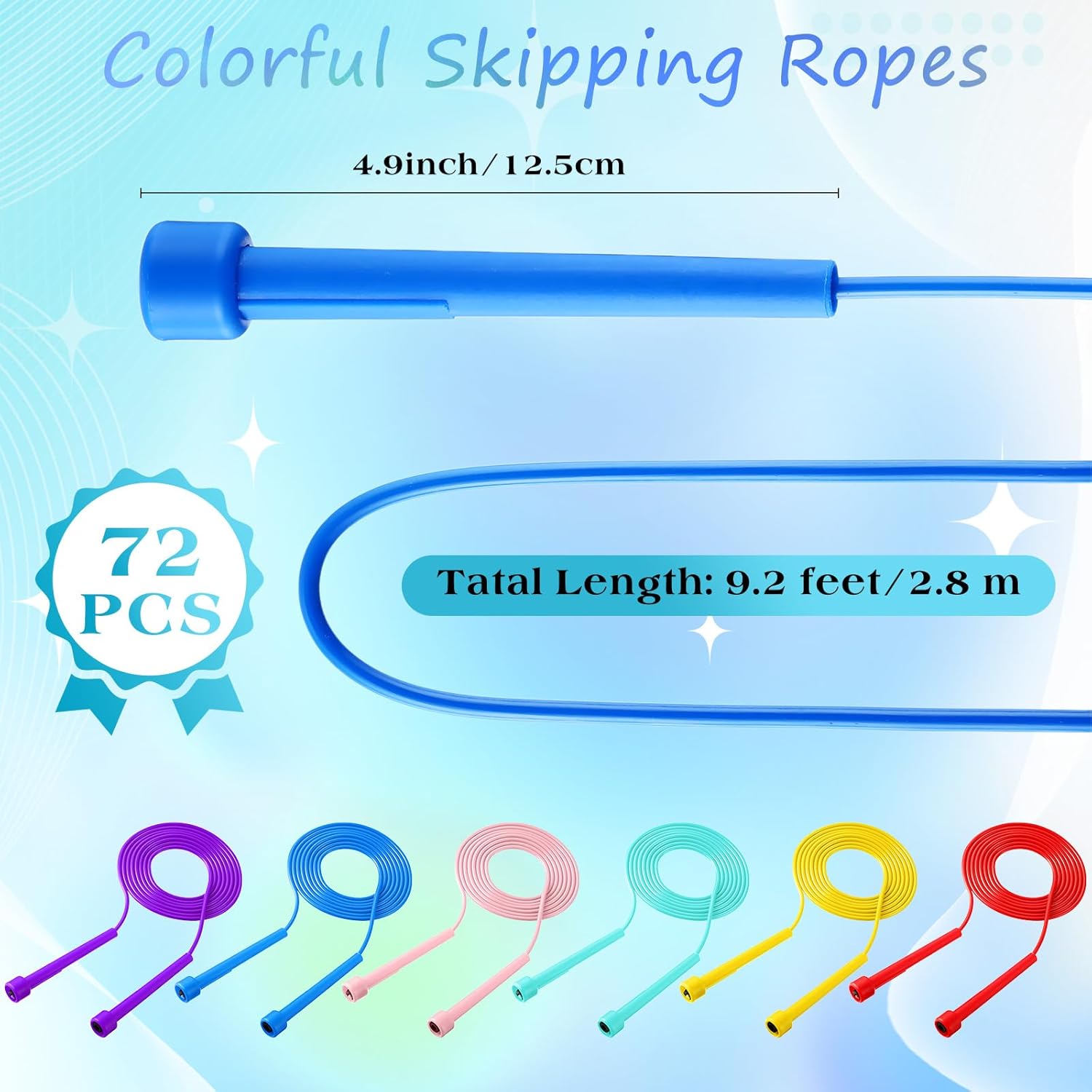 - Bulk Pack for Teams: the package includes 72 PVC jump ropes, designed with 6 assorted colors, including yellow, green, pink, red, blue and purple, 12 pieces for each color, ideal for team sports or group activities, sufficient for your needs