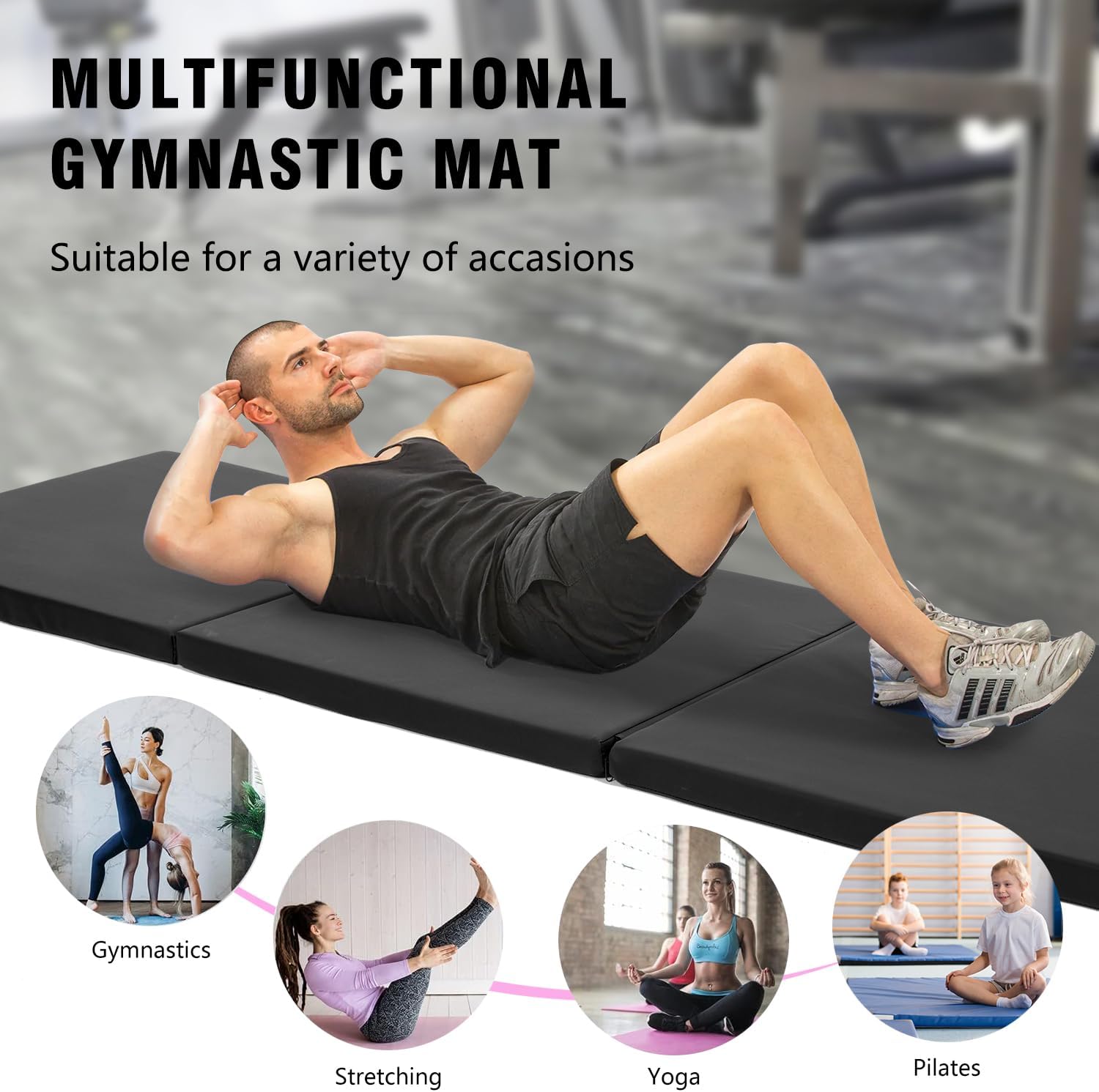Gymnastics Tumbling Mats Portable Gymnastics Mat Foldable Tumbling Mat 2'x6'/4'x8' PU Leather Exercise Mat Yoga Mat with Carrying Handles for home Workout outdoor Yoga Gymnastics