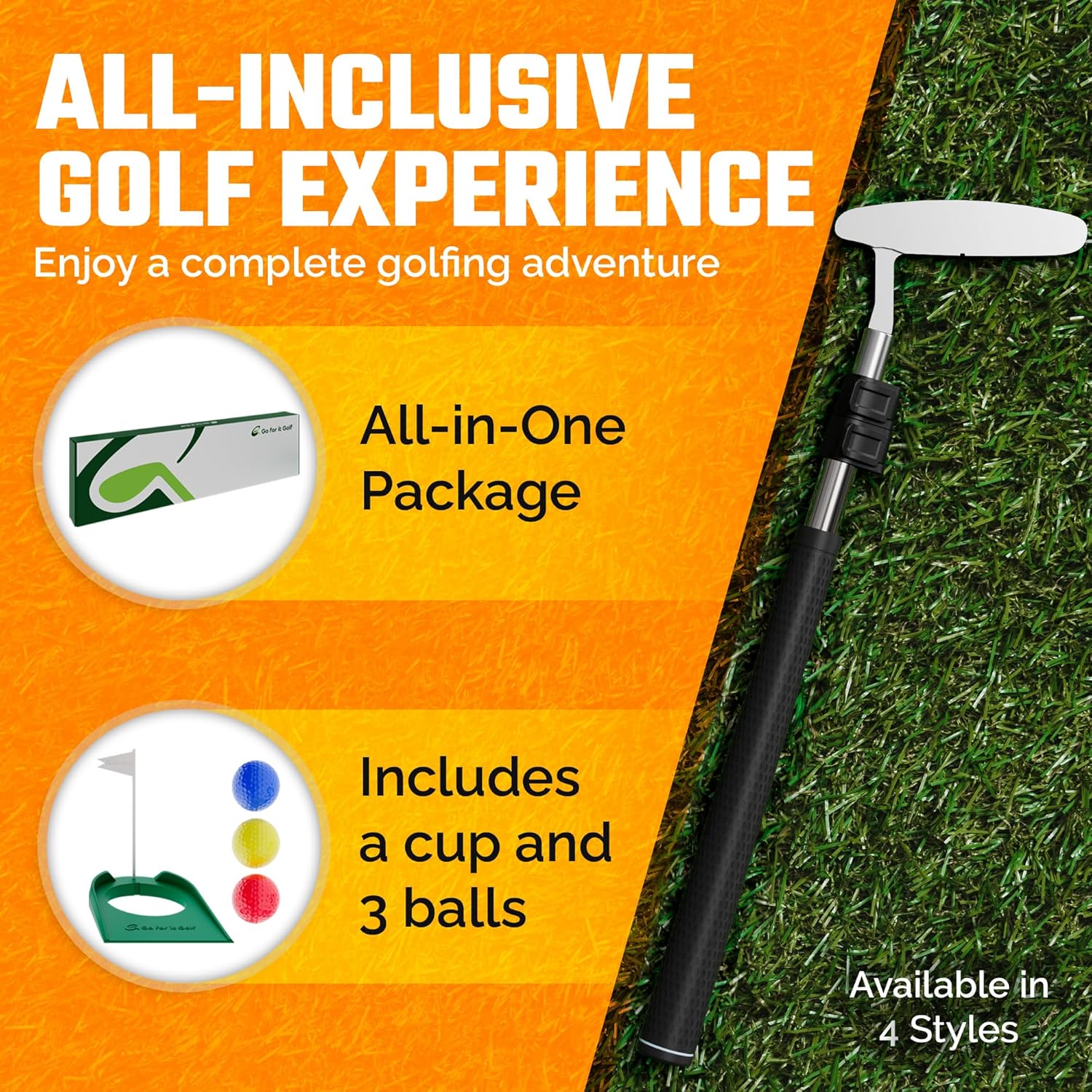 - Easy Size Adjustment: The Go For It Golf youth putter features a retractable clamp for hassle-free sizing from 17 to 35 inches. Perfect for putter practice, it ensures a consistent, enjoyable experience as kids grow and refine their golf skills.