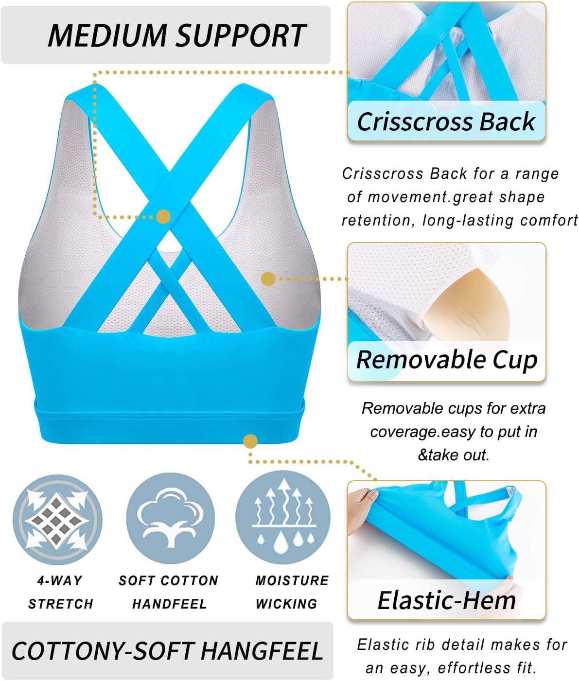 RUNNING GIRL Sports Bra for Women, Criss-Cross Back Padded Strappy Sports Bras Medium Support Yoga Bra with Removable Cups