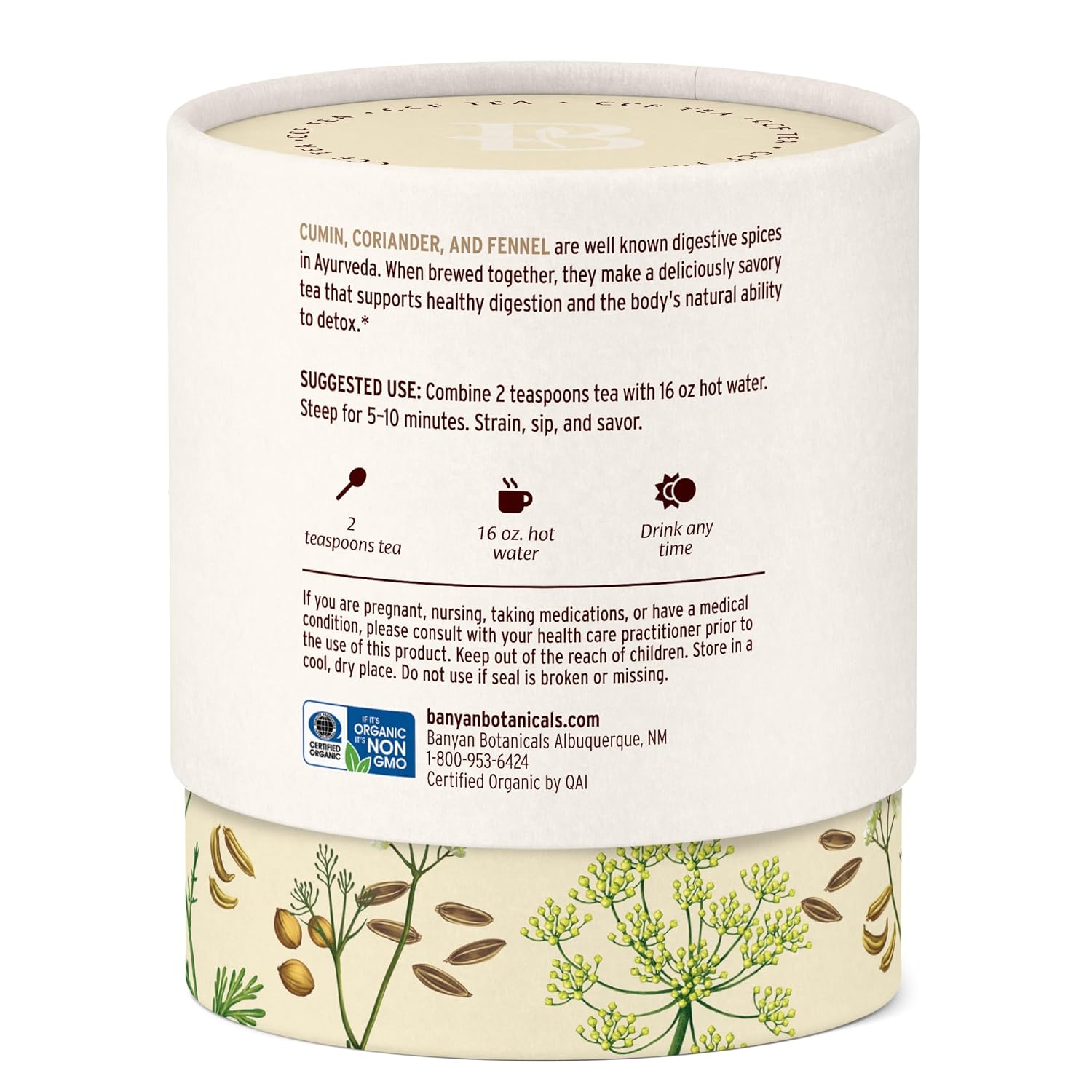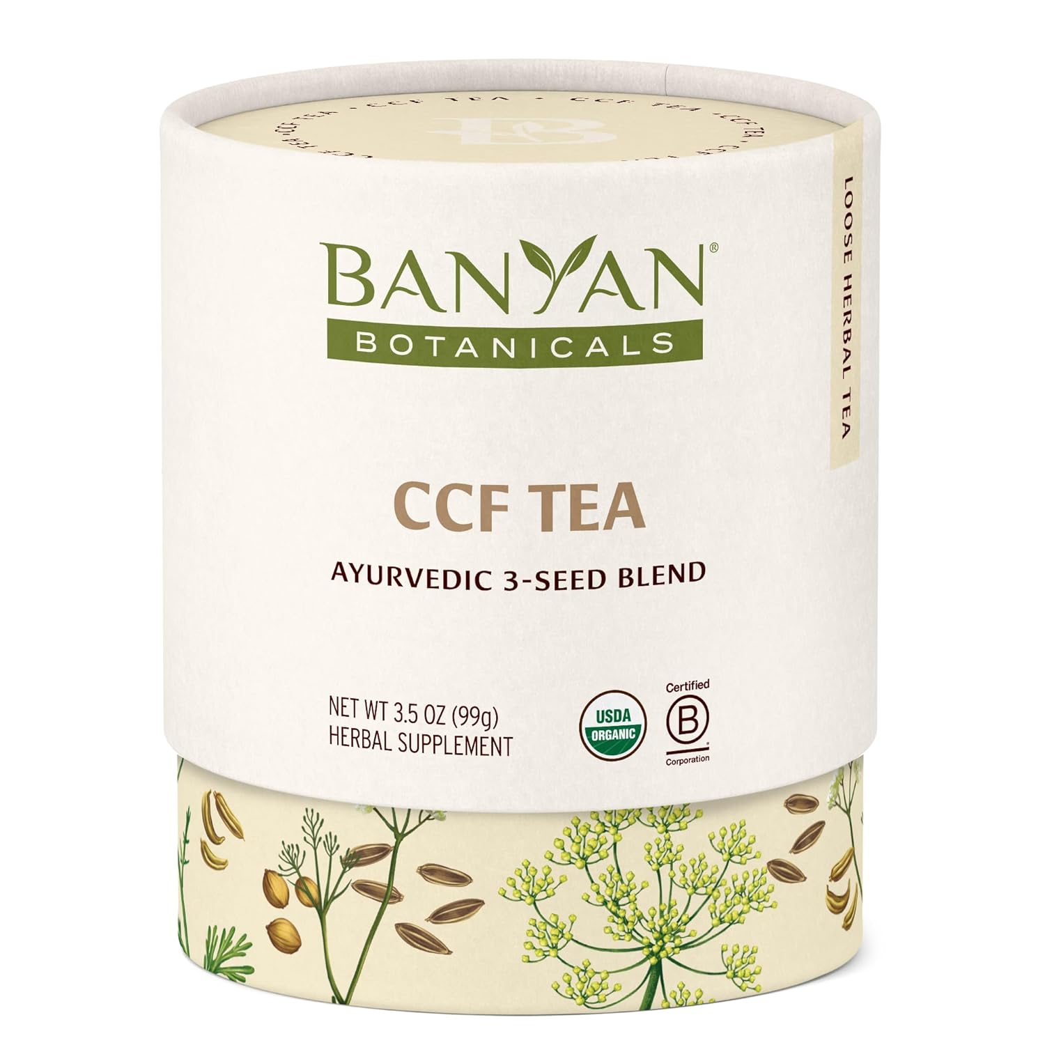Banyan Botanicals CCF Tea (Cumin, Coriander, Fennel) – Organic Digestion Tea – Traditional Ayurvedic Detox Tea For Supporting Digestion & Gentle Cleansing – 3.5 oz – Non-GMO Sustainably Sourced Vegan
