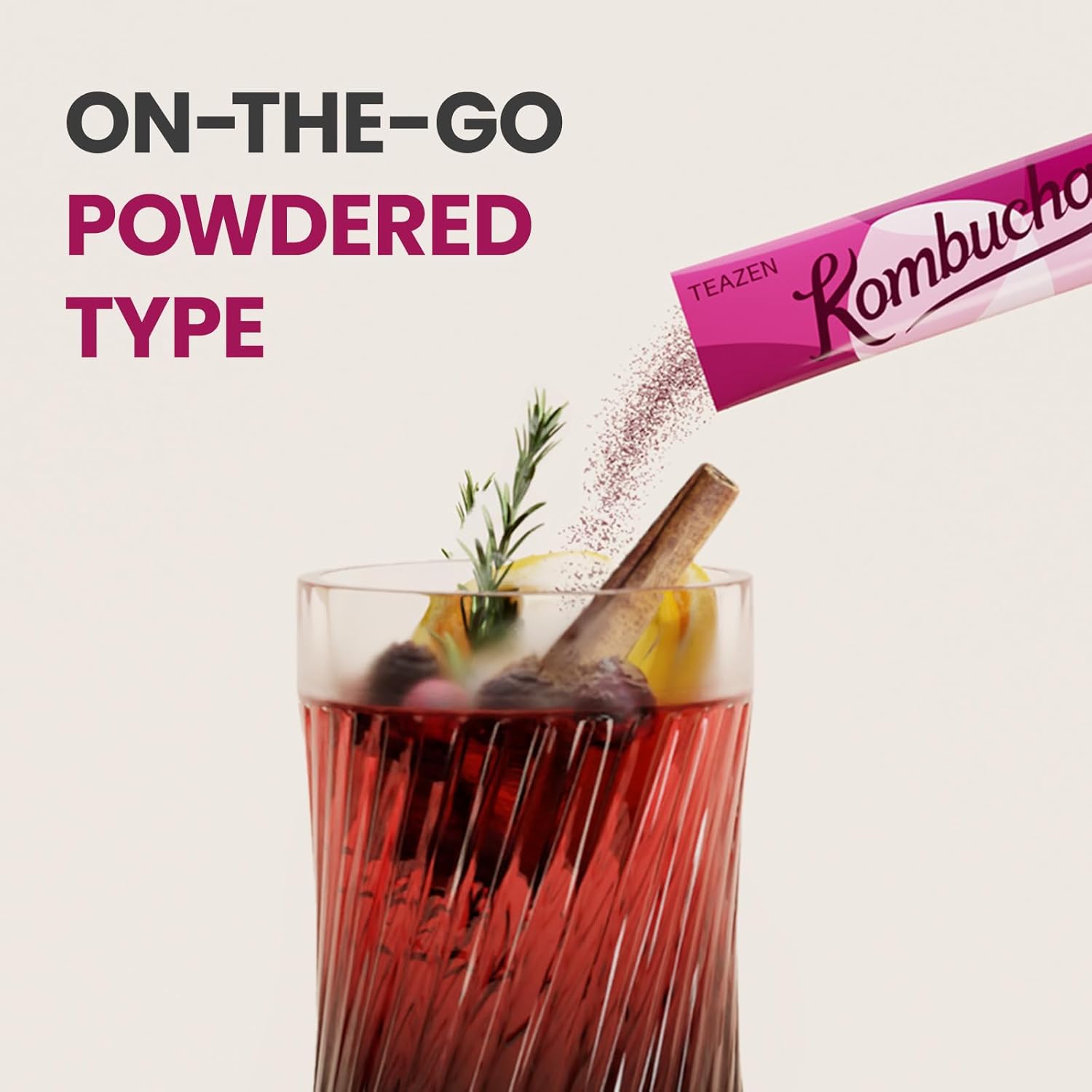TEAZEN Mulled Wine Kombucha Tea, Live Probiotics & Postbiotics, Relaxation and Warmth for Colds and Sore Throat, Electrolyte & Hydration Drink Mix, Sugar Free, 30 Sticks, 5.29oz
