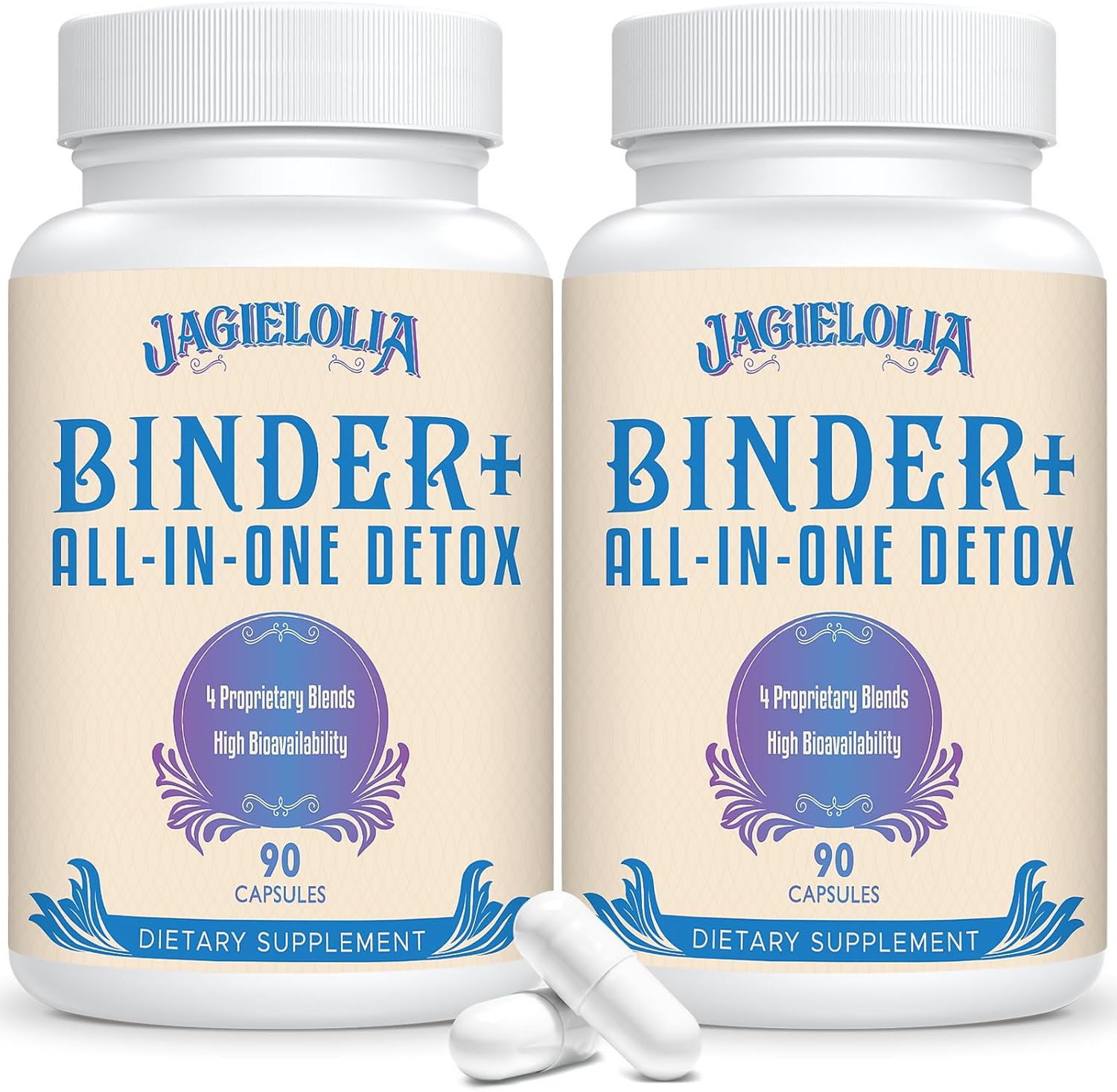 All-In-One Detox Binder Supplement 1500 MG - High Bioavailability, Liver Gut Detox Cleanse with Activated Charcoal, Zeolite & Bentonite Clay for Toxins, Liver, Digestive, 180 Vegan Capsules