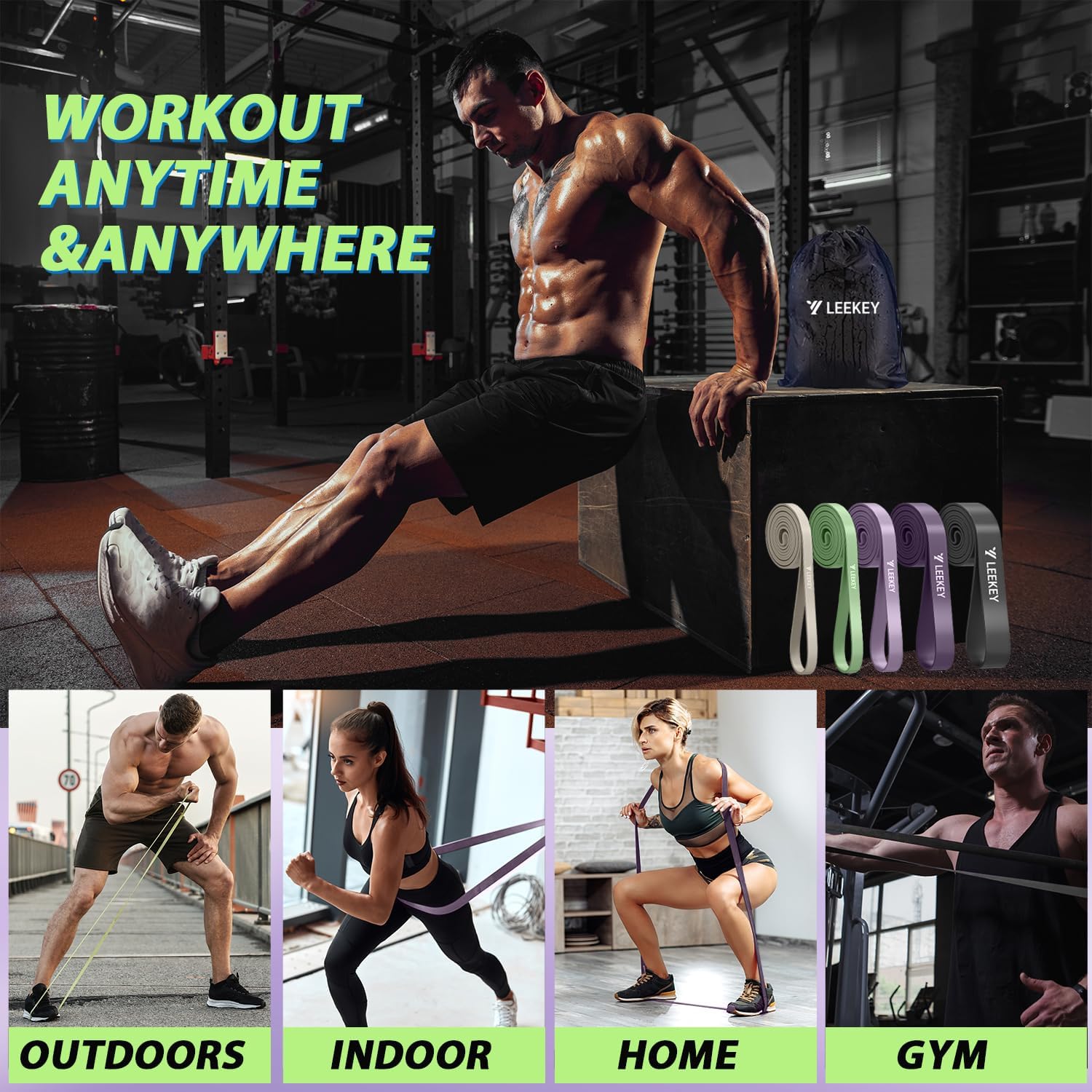 LEEKEY Resistance Bands Set for Pull-Up Assistance & Full-Body Training, Multi-Level Exercise Bands with Bag for Home Workouts, Physical Therapy, Strength Training (Men/Women)