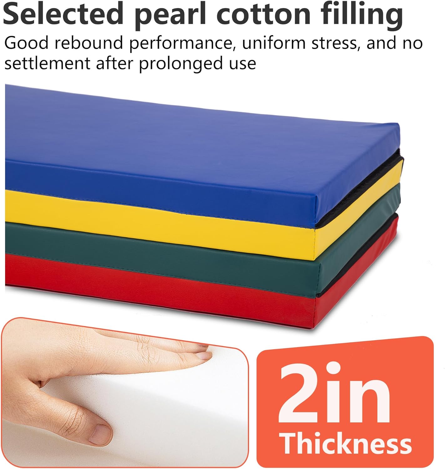 - Sturdy and Comfortable: The matβs 2-inch thick cushion provides a comfortable surface for various activities, while the high-density EPE foam ensures excellent support and shock absorption, reducing the risk of injuries during workouts. the gymnastics mat is soft but also durable.