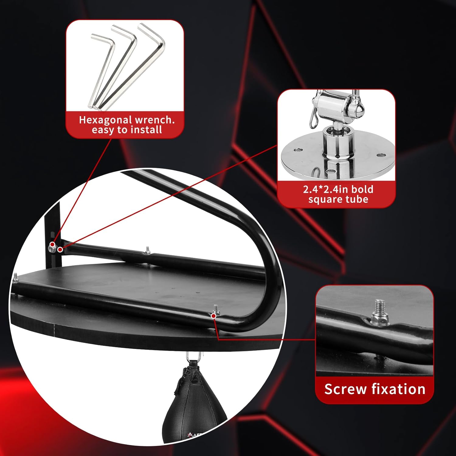 - STURDY STEEL FRAME: Attach on heavy duty steel tube for maximum stability, solid and firm, including wall mount frame, it stay put on wall with no wobble, can easily endure all shock from high speed boxing