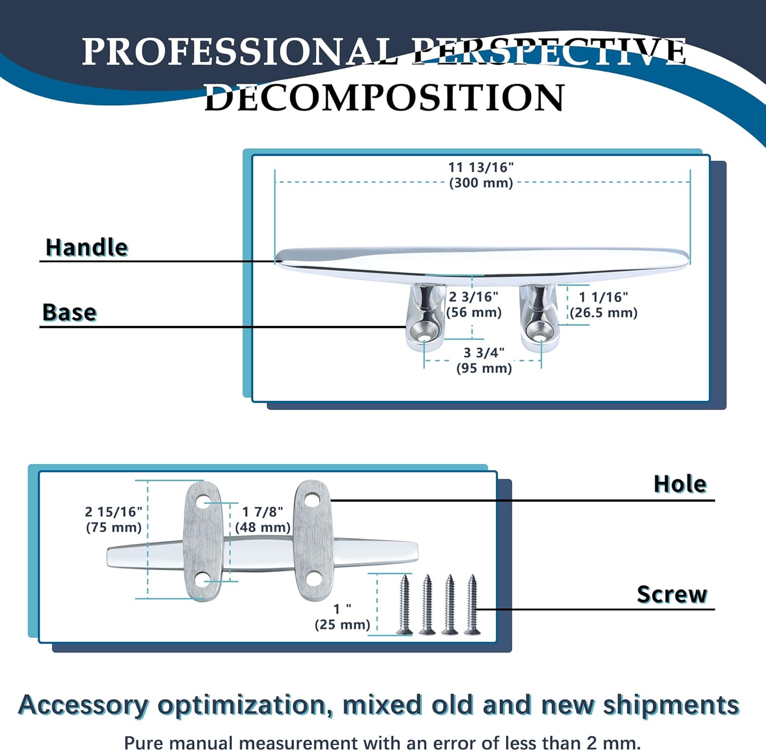 - SHENGHUISS Boat cleats made of 316 stainless steel, maximum corrosion resistance, higher hardness, moisture-resistant, acid and alkali resistant, anti-rust, gloss and bright surface, non toxic, etc.