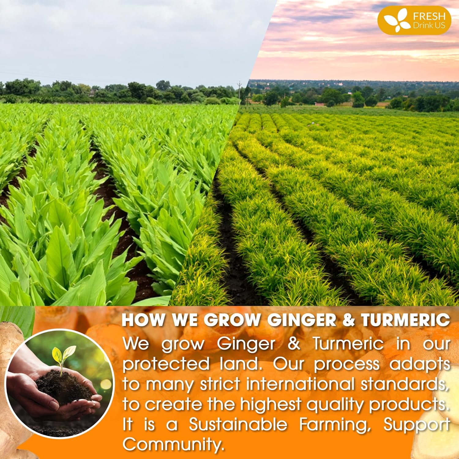 FreshDrinkUS, Premium 85 Ginger Turmeric Tea Bags, 100% Natural Ingredients, Hand-made Blend of Ginger and Turmeric Herbal Tea, Eco-conscious Tea Bags. No Sugar, No Caffeine, No Gluten, Vegan.