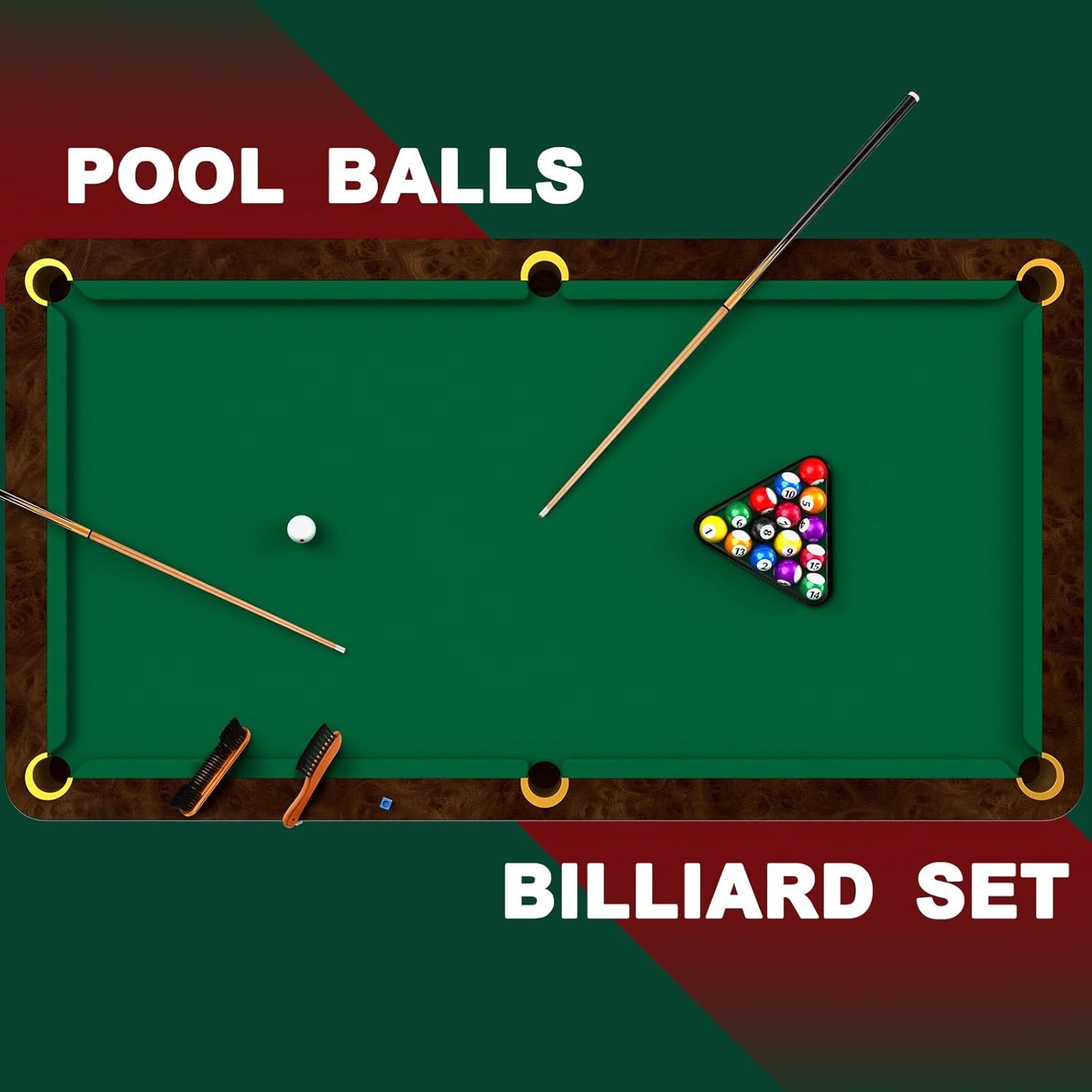 - Detailed Size: the diameter of this billiard balls set measures about 2.25 inches/ 5.72 cm, and the pool table sticks are about 57.1 inches/ 145 cm in length, standard sizes for you to use