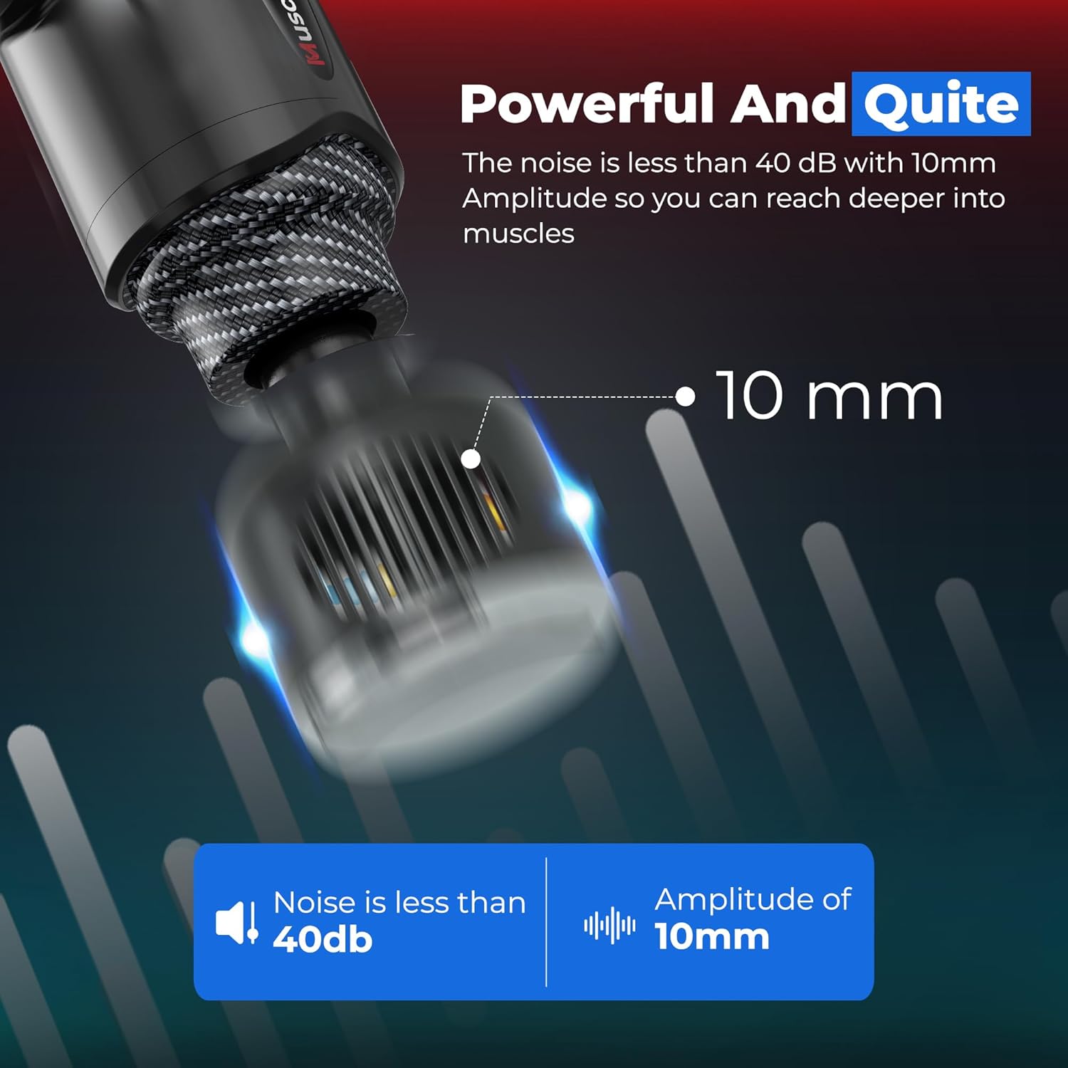 - Ultra-Silent Deep Tissue Muscle Massage Gun - Perfect massage gun for athletes' hand back Leg workouts. Built-in a super quiet brushless motor, as low as 40db, brushless motor. MuscleBuddy percussion massager gun is ultra-compact and easy to grip, making it ideal for home, office or gym use anytime.