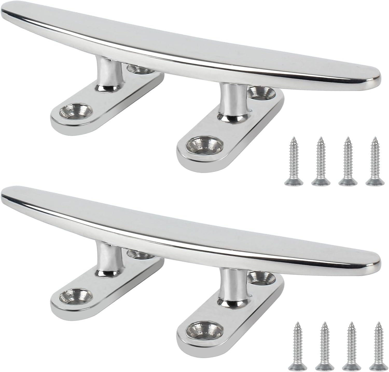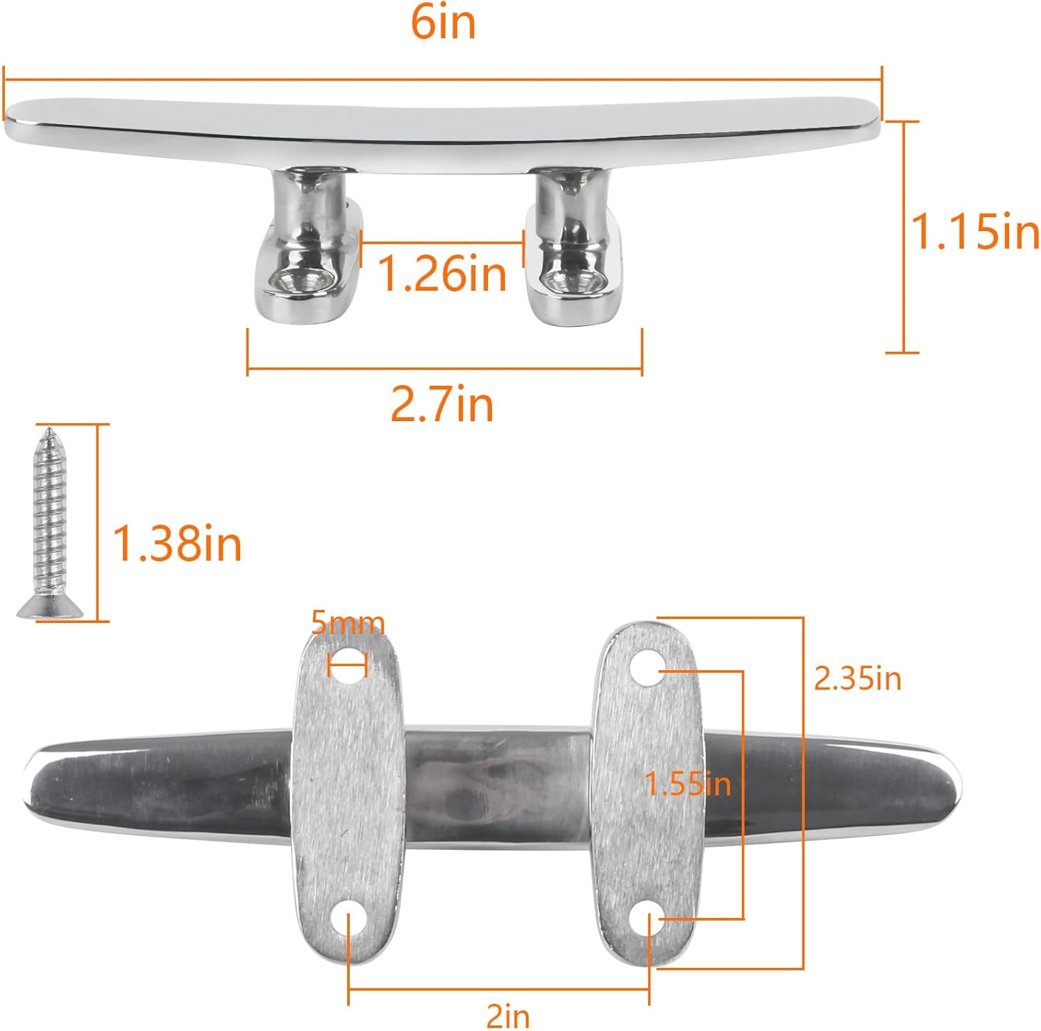 - 【Open Base】The open base style is one of the most popular cleats found on most boats,Large bottom footprint for additional strength,easy line tie-off for any boat,boat cleats have enough space to securely tie common knots, such as cleat hitches, lilac knots, bowling ball knots and anchors Knots and more.Boat dock cleats have undergone mirror polishing treatment, and the edges of the product have been polished smooth,and smooth edges won't cutting the dock rope.