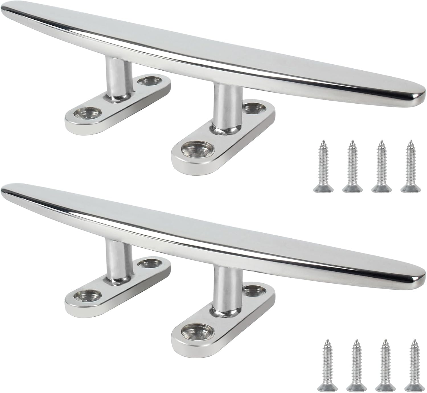 - 【Open Base】The open base style is one of the most popular cleats found on most boats,Large bottom footprint for additional strength,easy line tie-off for any boat,boat cleats have enough space to securely tie common knots, such as cleat hitches, lilac knots, bowling ball knots and anchors Knots and more.Boat dock cleats have undergone mirror polishing treatment, and the edges of the product have been polished smooth,and smooth edges won't cutting the dock rope.
