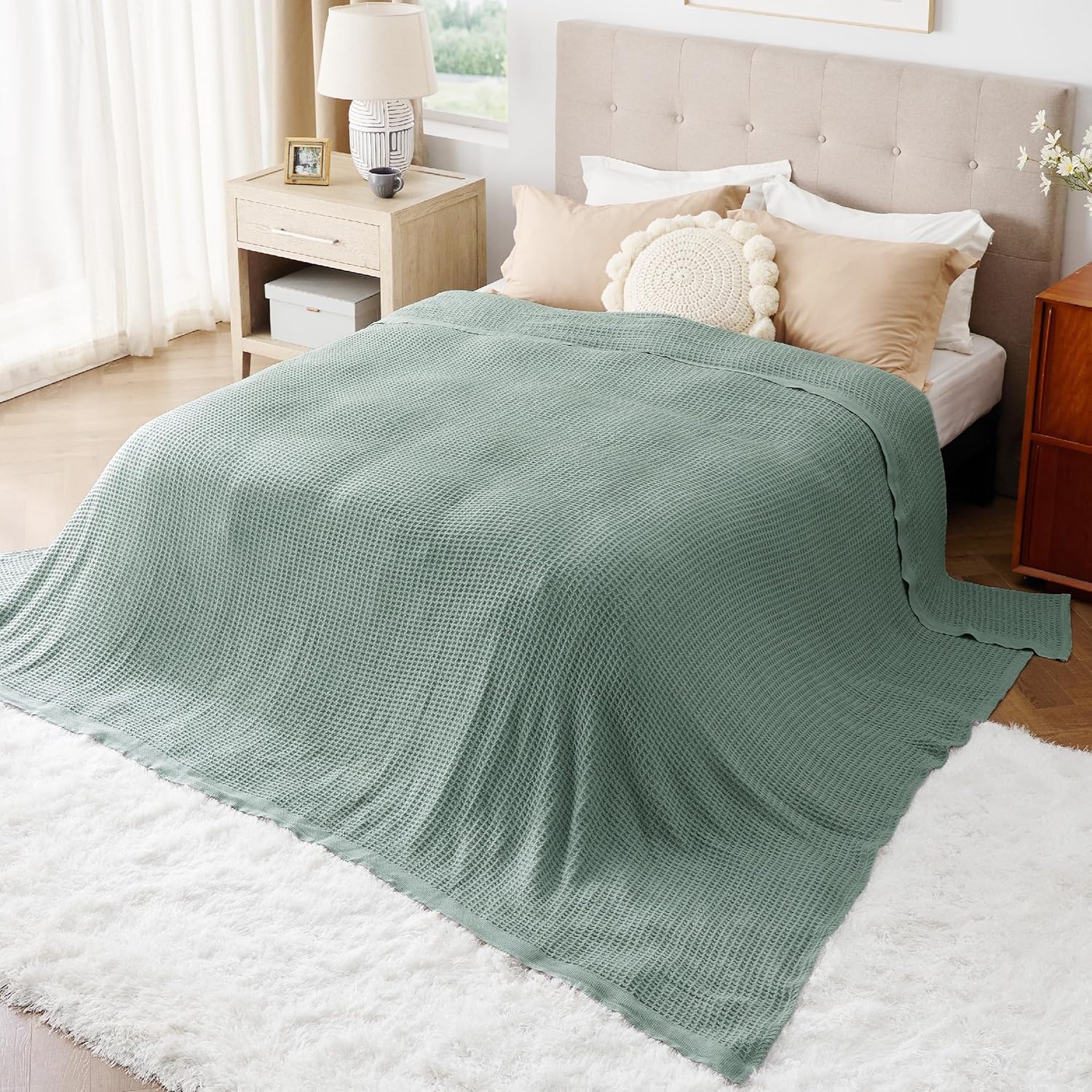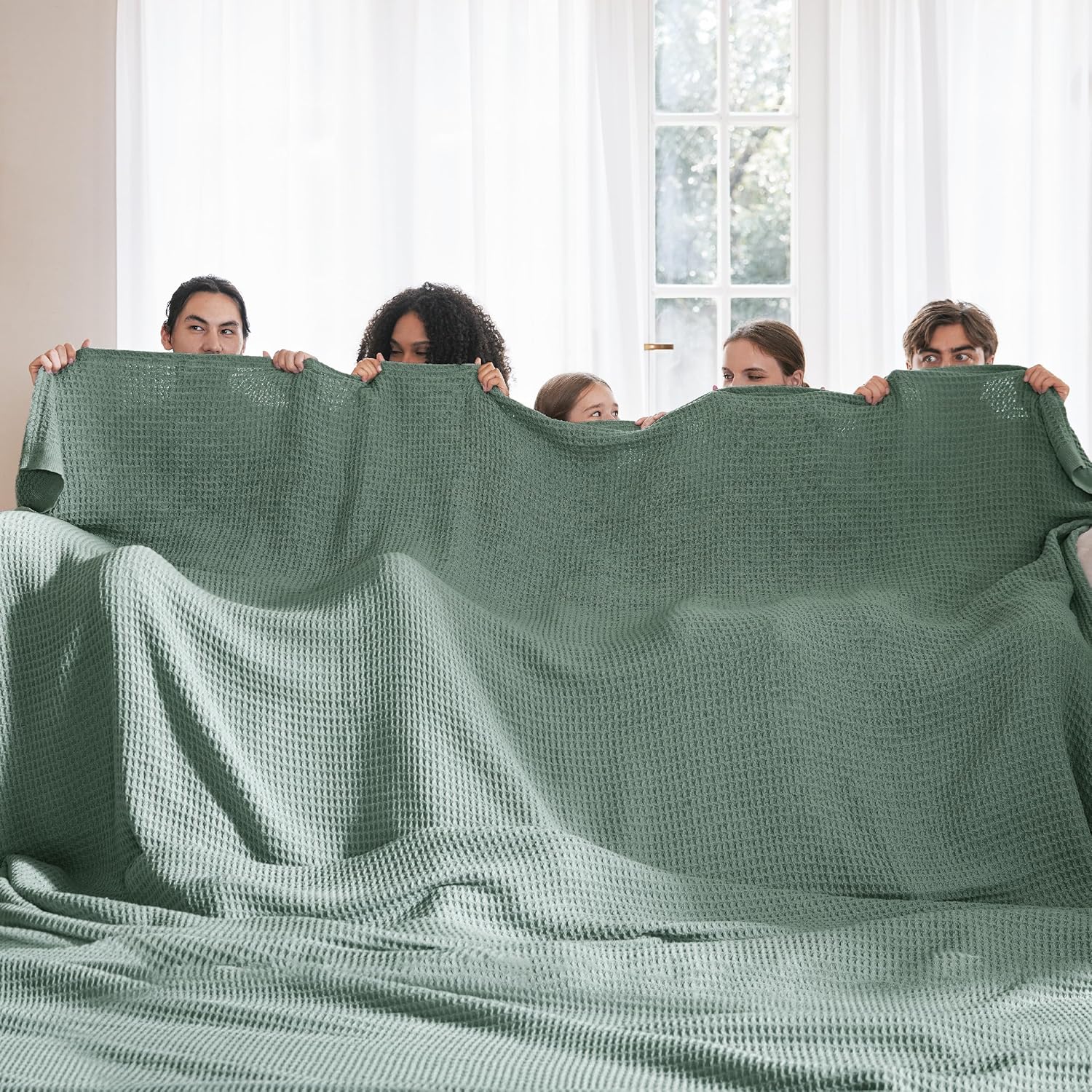 Bedsure 100% Cotton Large Blanket Oversized King for Bed - Breathable Thick Waffle Weave Blanket for Summer, Couch Cover, Sage Green, 120x94 inches