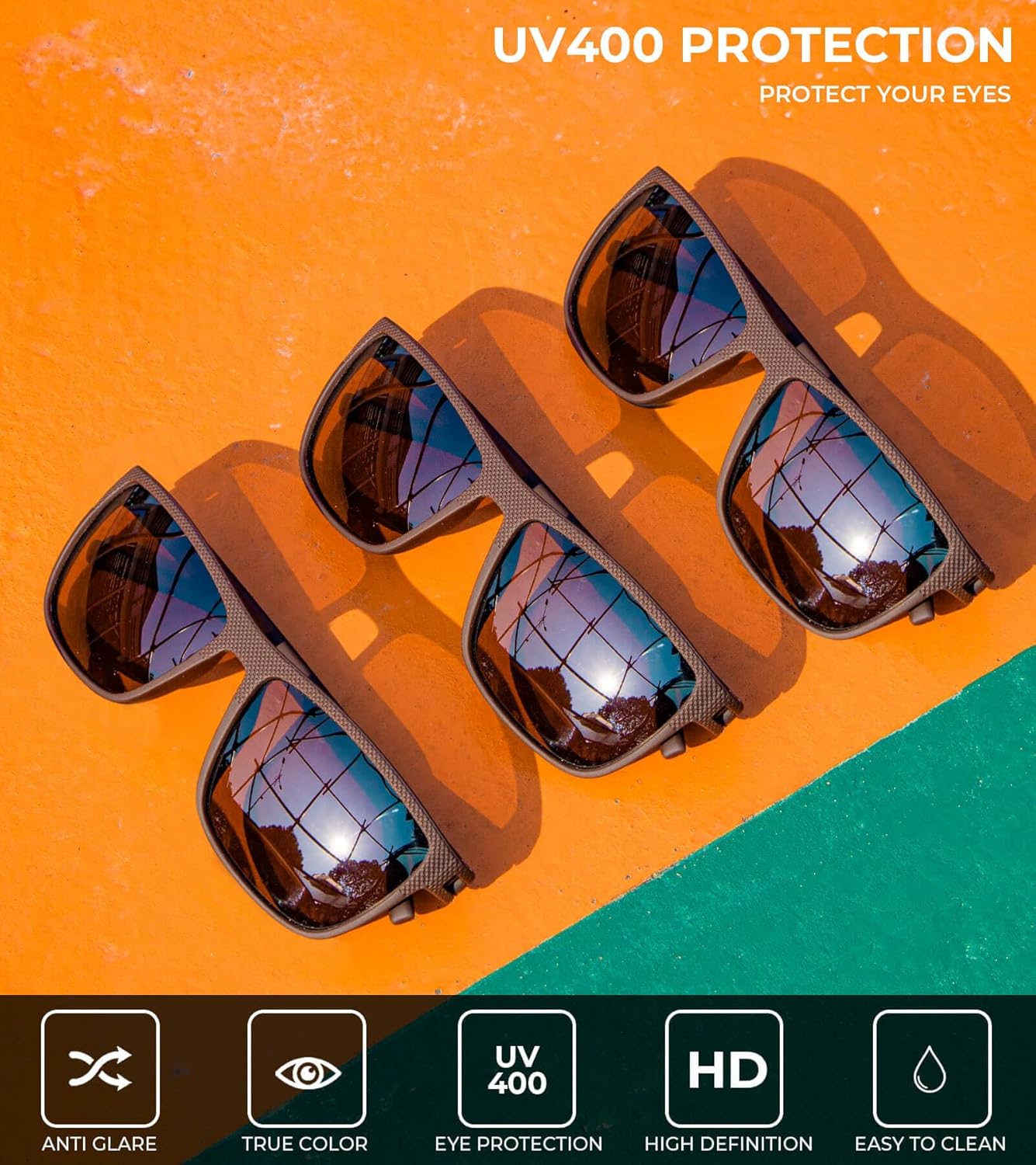 • 😎 HD Polarized Lens β–Ά To prevent your eyes from the harmful UV rays, all of KALIYADI mens sunglasses polarized choose premium polarized lenses with UV400 protection function. You can be free all the time under the sunlight without worrying about the of damage to your eyes from both UVA, UVB and glare. KALIYADI mens polarized sunglasses restore true color of the world and making it more clear and soft.