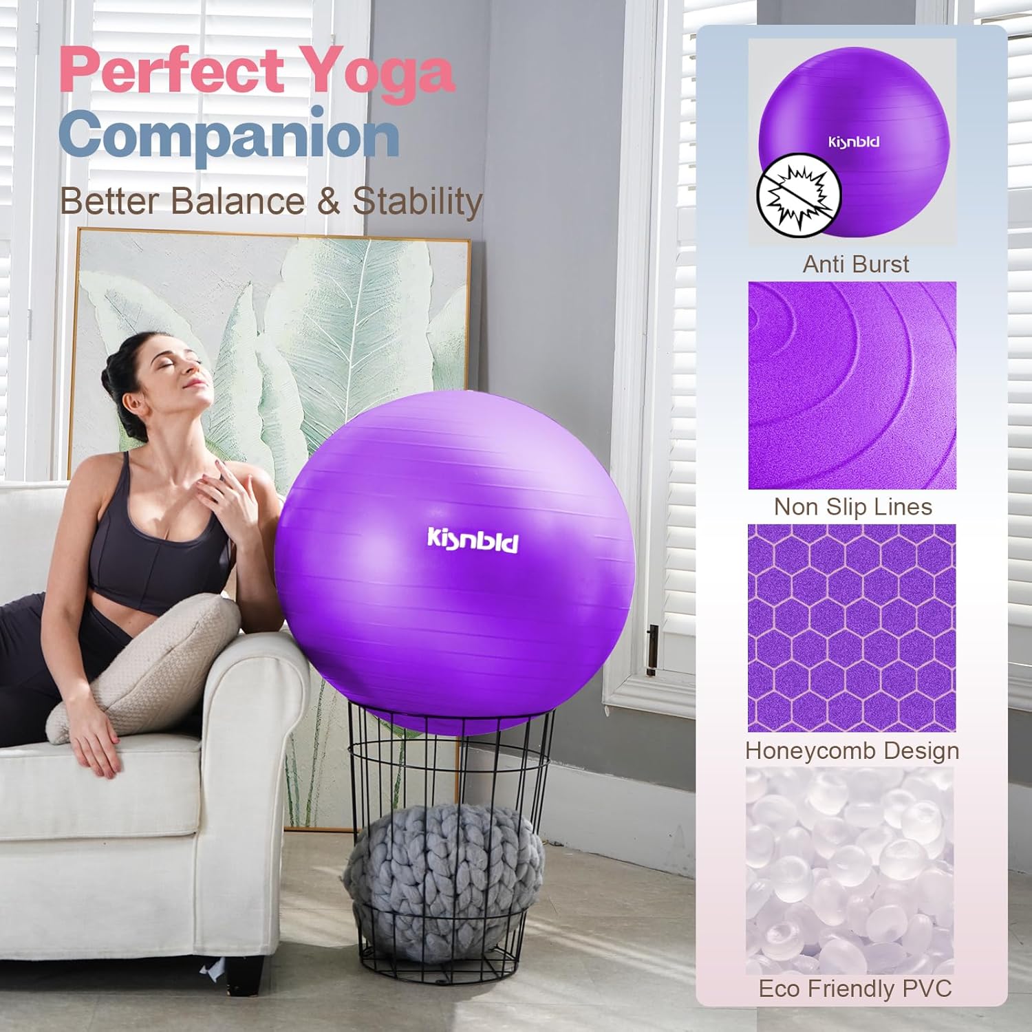 Exercise Ball, Extra Thick Yoga Ball for Workout Pregnancy Stability, 4 Sizes Anti-Burst Balance Ball with Foot Pump - Heavy Duty Fitness Ball Chair for Office, Home & Gym