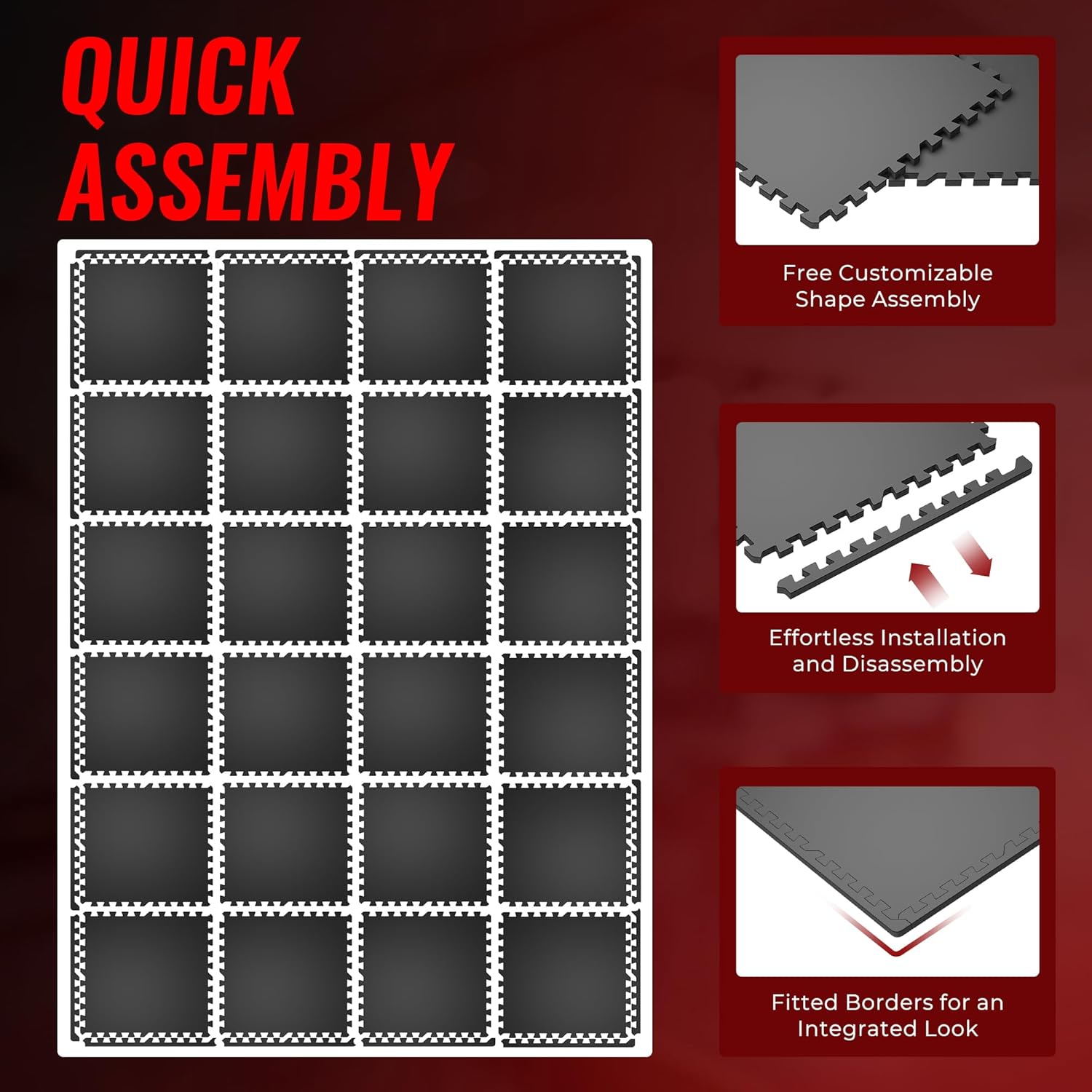 SUPERJARE 0.56'' Thick 24 Pcs 96 Sq Ft Rubber Top Exercise Equipment Mats, High Density EVA Foam Mats with Rubber Top, Interlocking Gym Flooring for Home Gym, Protective Workout Mat, Black