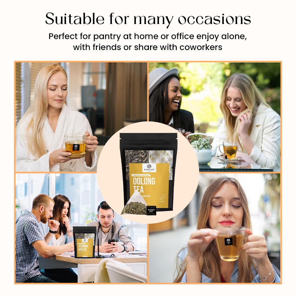 Blendart Jasmine Oolong Tea bags 100 Count | Oolong tea bags for weight loss | Premium High Mountain Oolong Tea leaves | Naturally Caffeinated Tea | Flower Scented Tea | Pyramid Tea bags