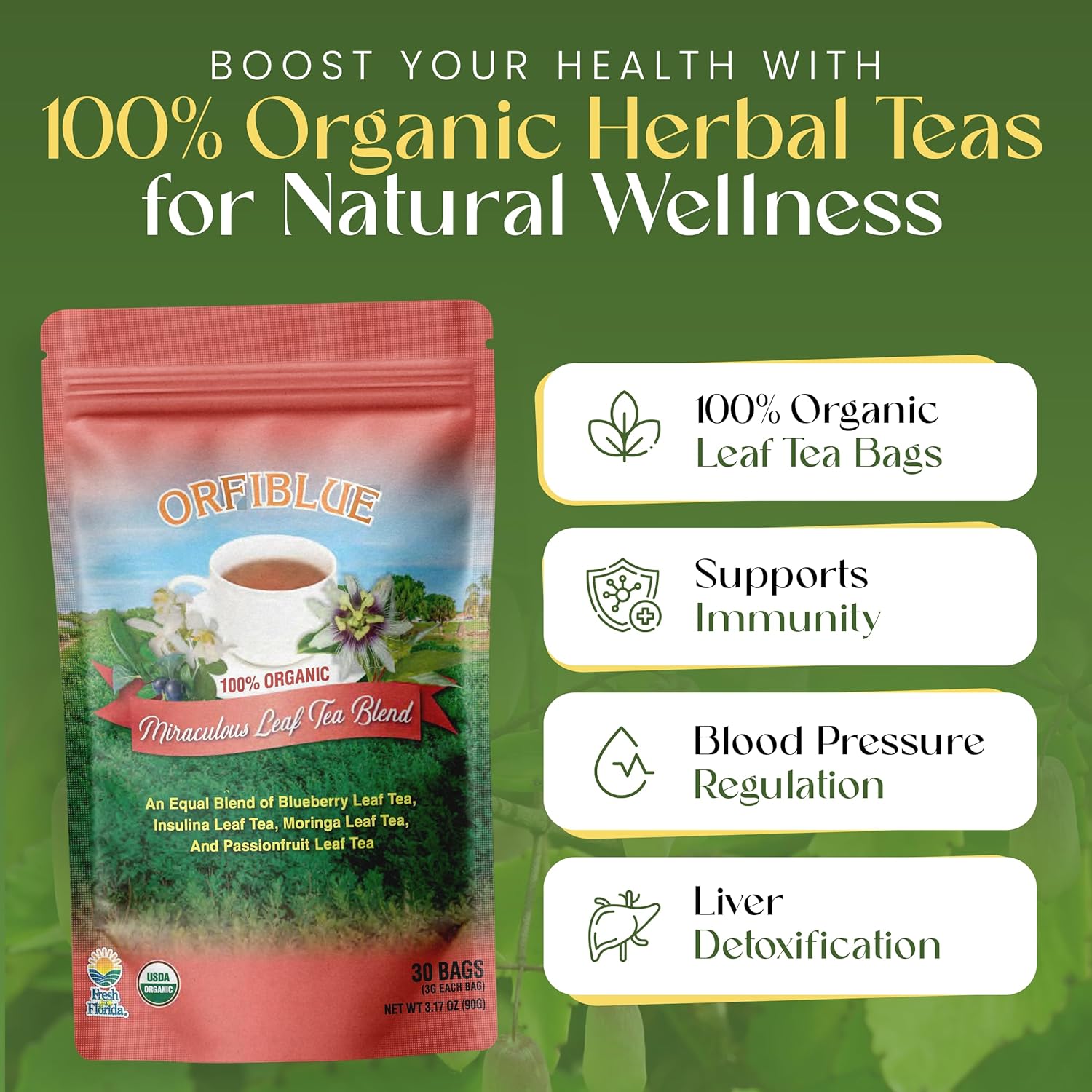 100% Organic Miraculous Leaf Tea bags | Organic Herbal Teas | Premium Quality & Flavorful Blends - 0 Sugars, 0 Carbs, 0 Fats, 1% Sodium (25mg) | Rich in Vitamins - Detox, Immunity, Wellness & More