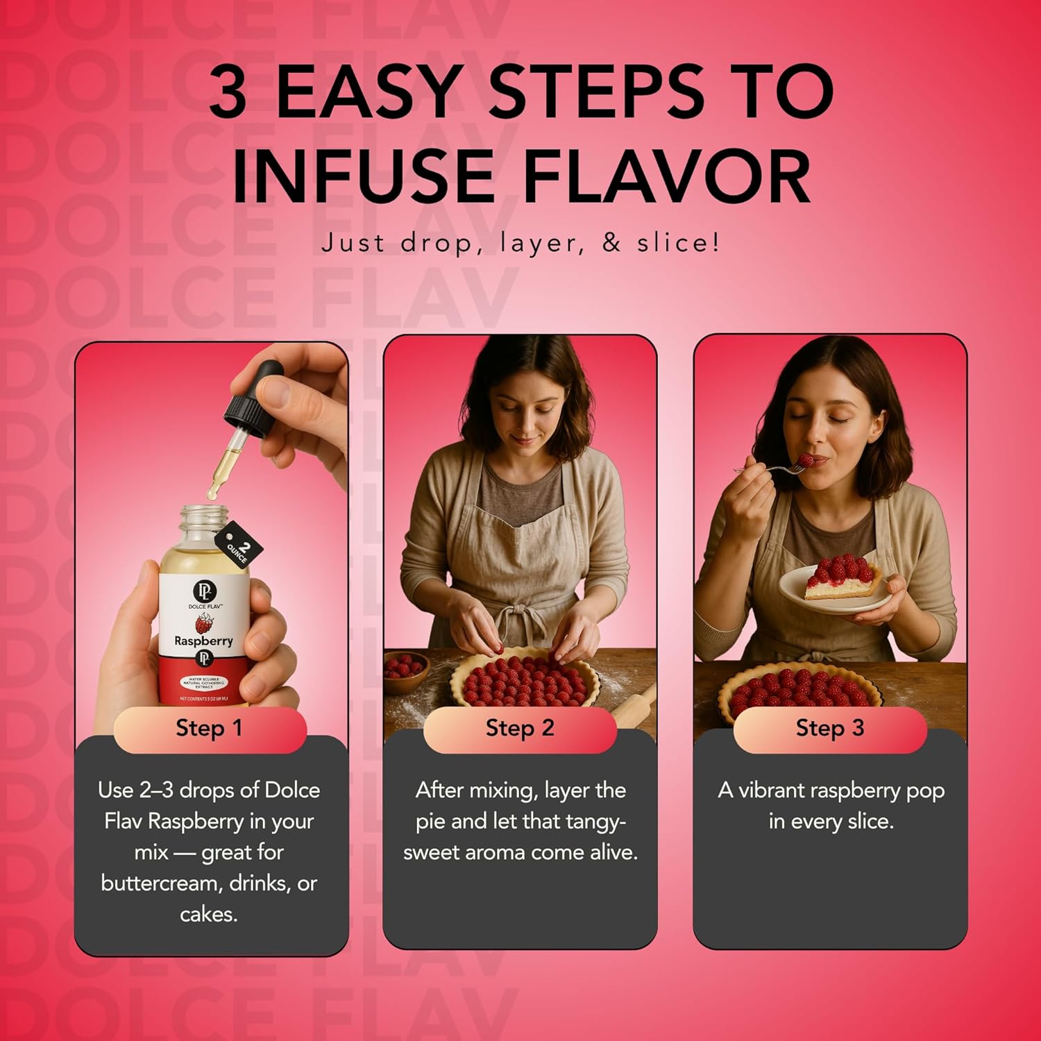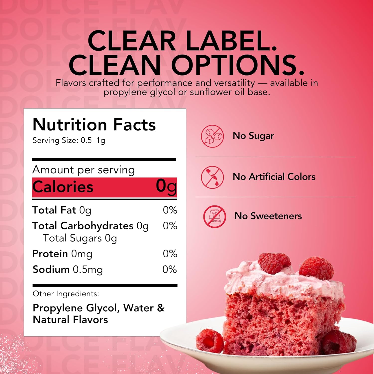 Dolce Flav Natural Raspberry Extract 2 oz – Kosher, Sugar-Free, Concentrated Tart Raspberry Flavoring for Baking, Beverages & Desserts, Includes Measured Dropper