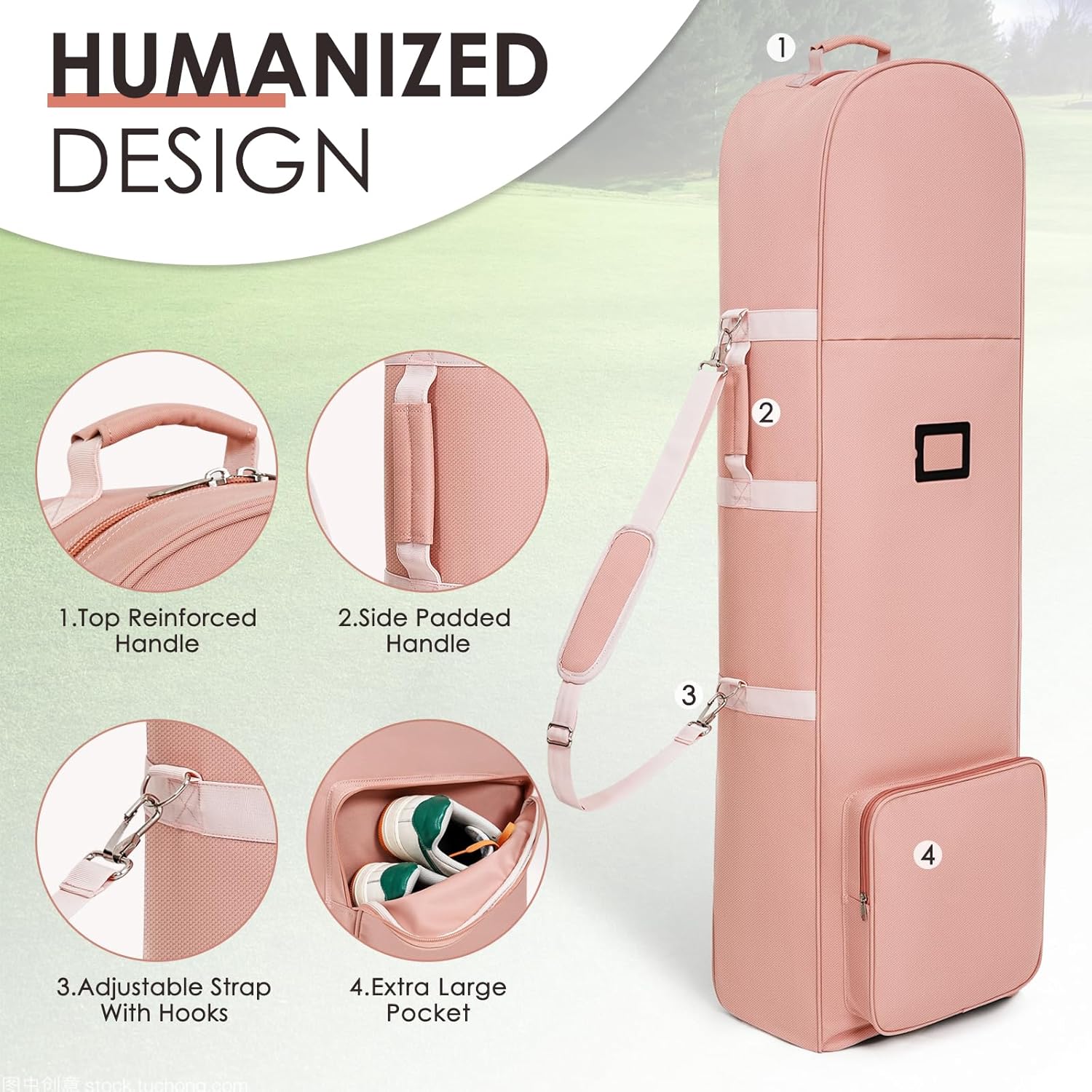 - [UPGRADED WHEELS] This Travel Golf Bag has two smooth rolling wheels and a thick padded top, making it effortless to move around on the course or in the airport. A practical choice for golfers who value portability.