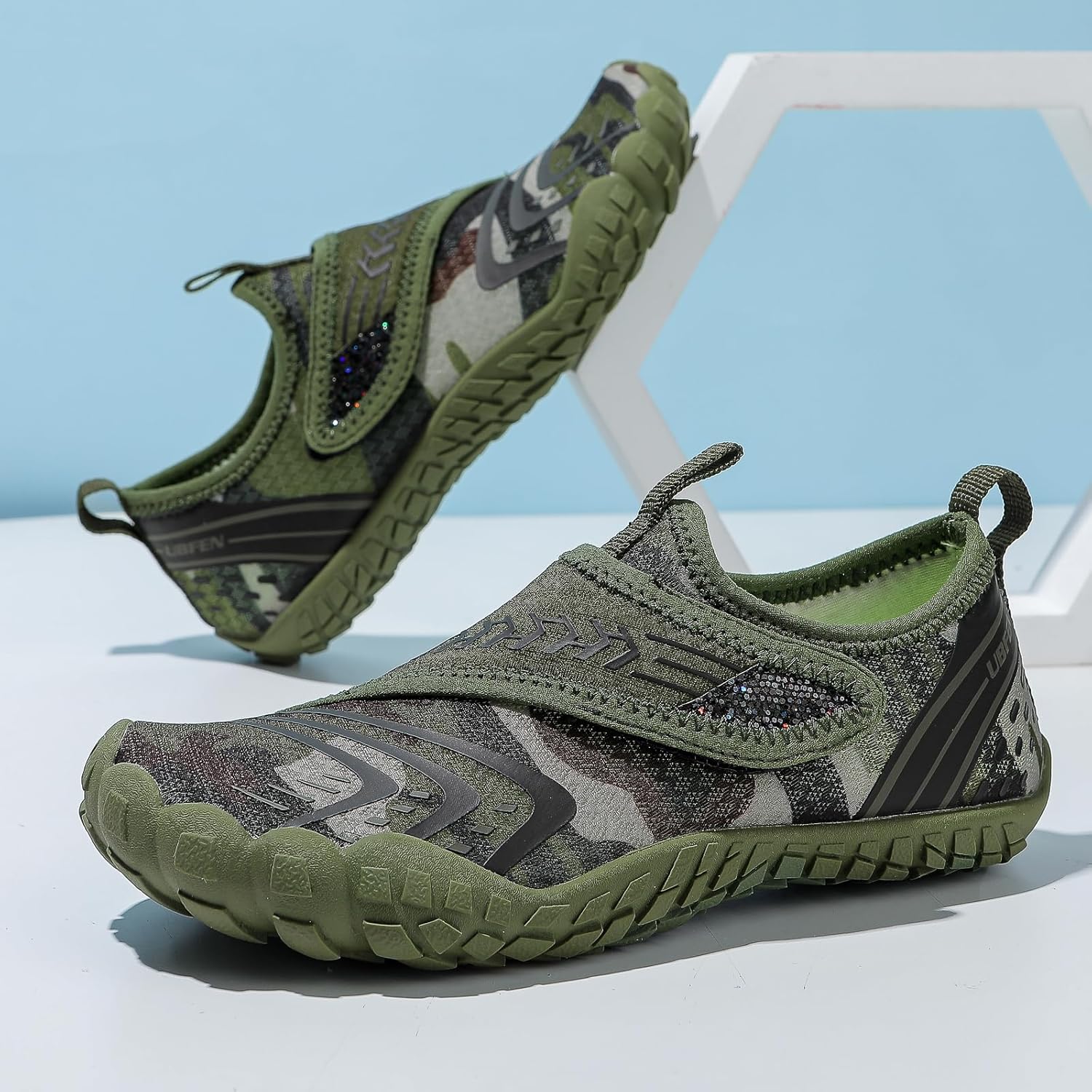 - Barefoot-Like Experience: These water shoes offer a soft and elastic feel, giving your kids the freedom to move and play comfortably. The toe design ensures a natural and barefoot-like experience, promoting healthy foot development.